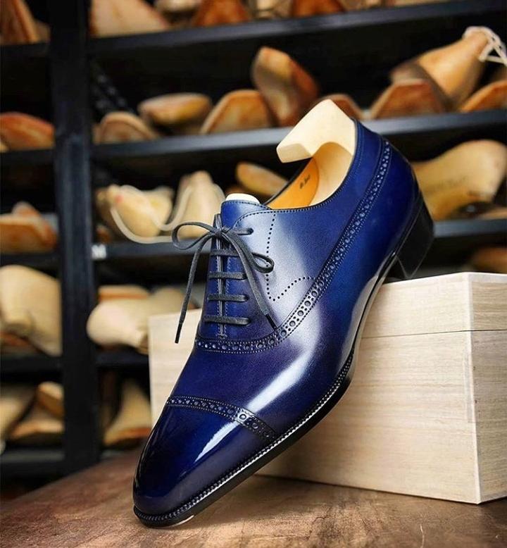 New Handmade Blue Cap toe Formal Lace Up Leather Dress Shoes