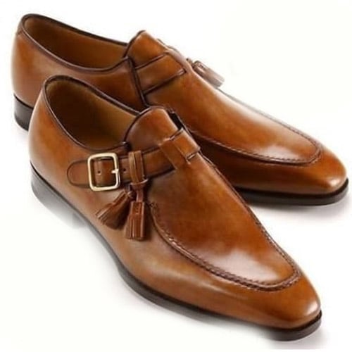 Latest Handmade Brown Side Tussles Brogue Monk Formal Shoes In Genuine Leather For Men
