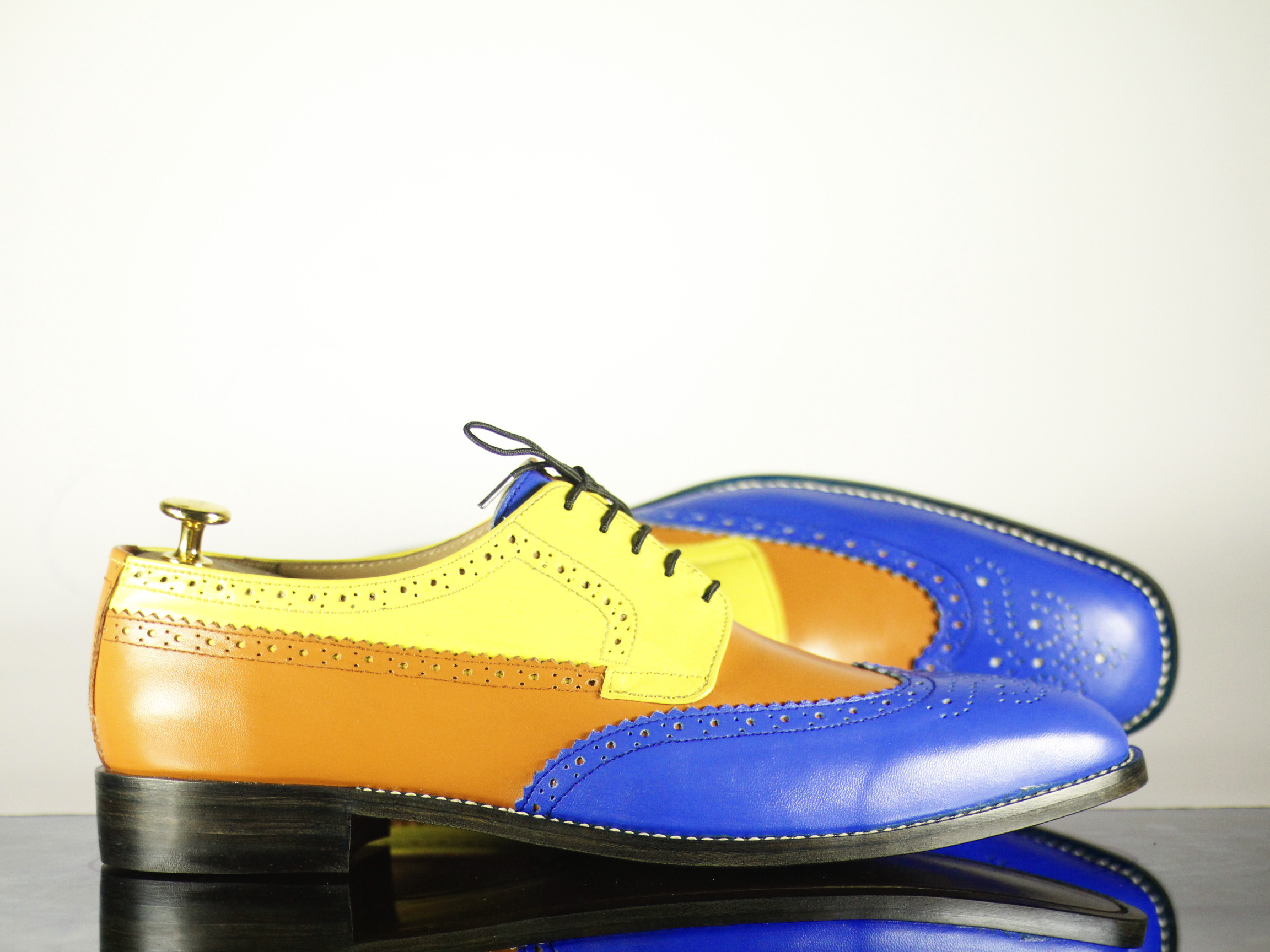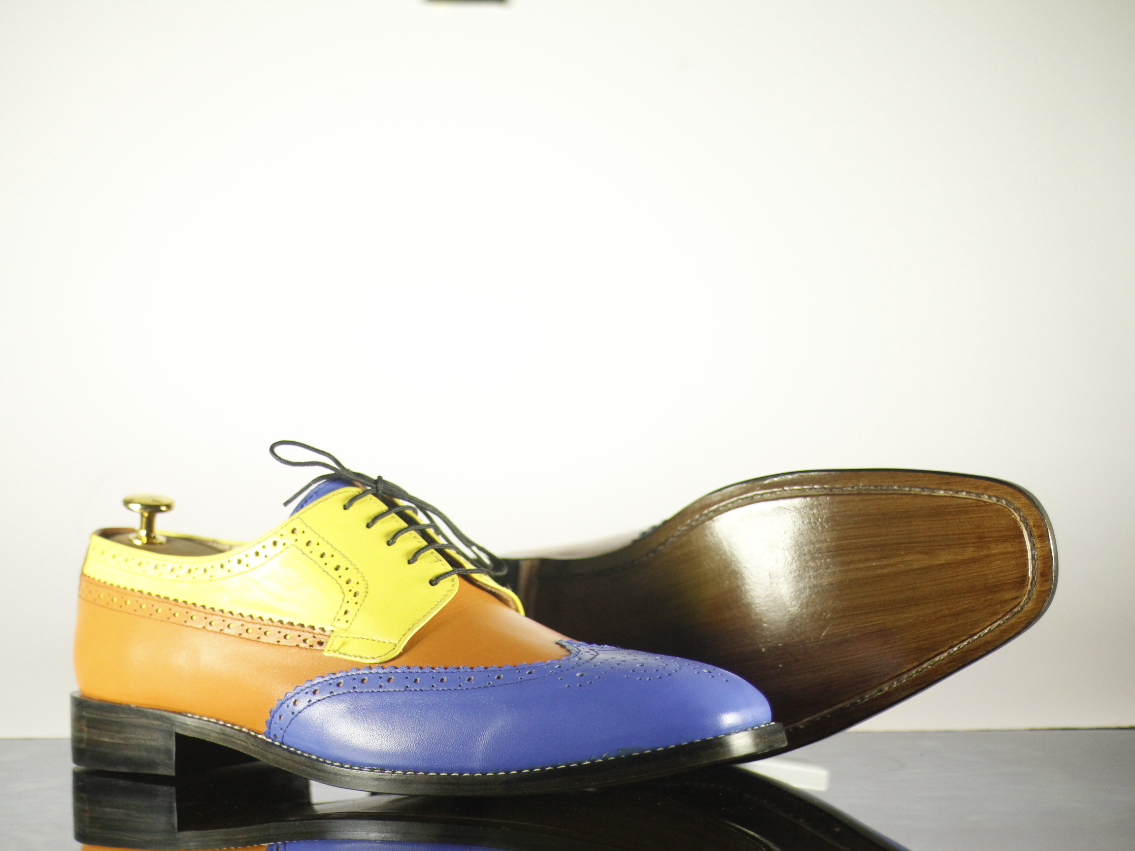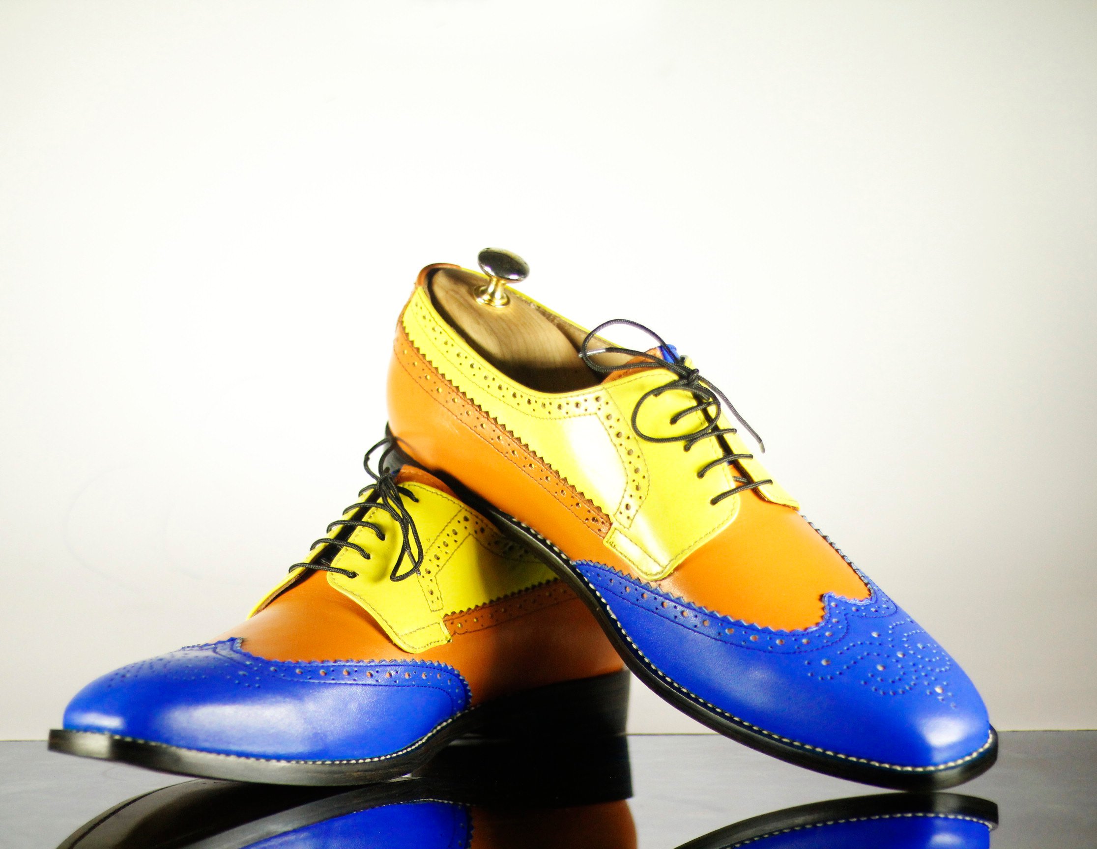 Handmade Men's Multi Color Leather Wing Tip Brogue Lace Up Shoes