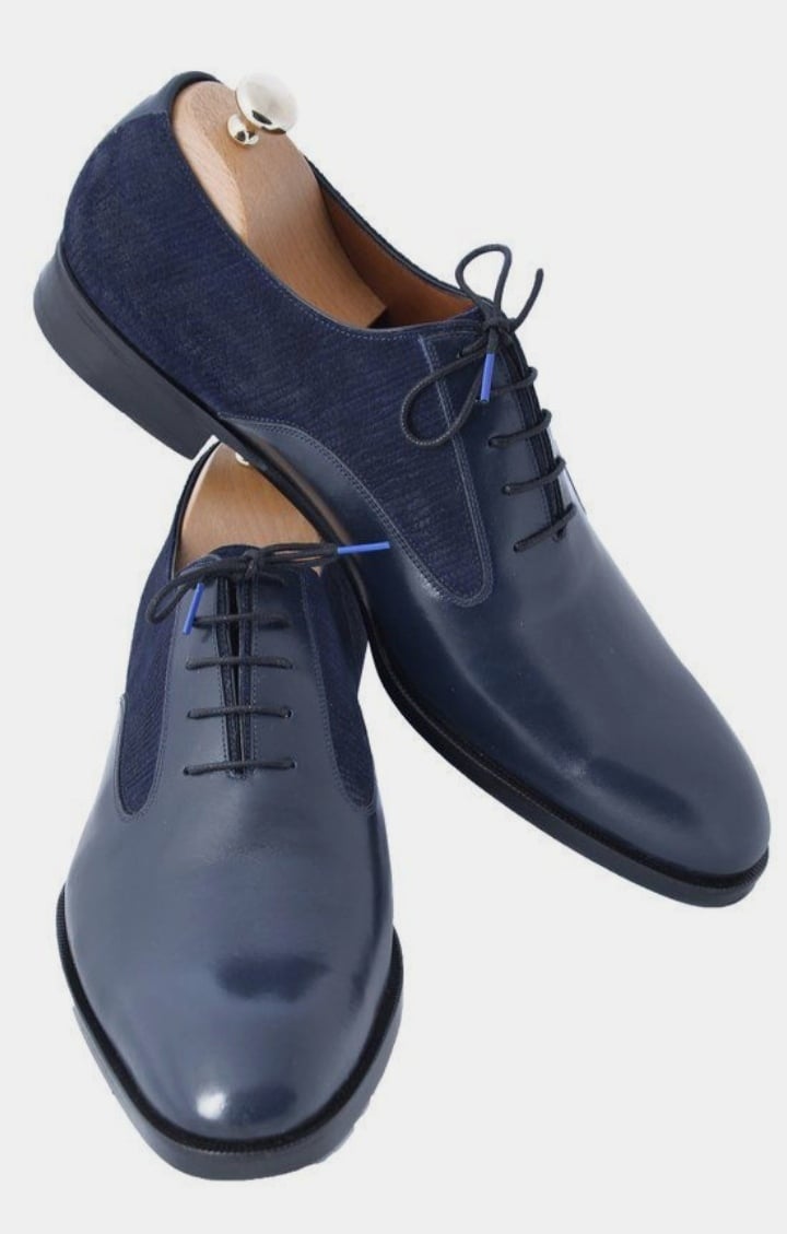 Latest Unique Decent Handmade Blue Tweed Formal Lace Up Shoes In Genuine Leather Suede For Men