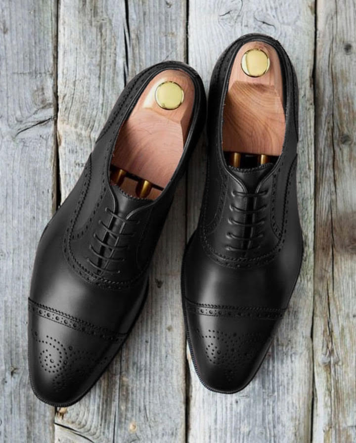 Handmade Men's Black Color Leather Cap Toe Brogue Dress Lace Up Shoes