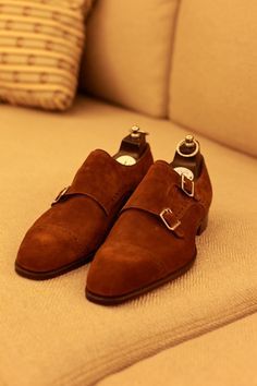 Handmade Men's Brown Color Shoes, Suede Double Monk Dress Formal Shoes