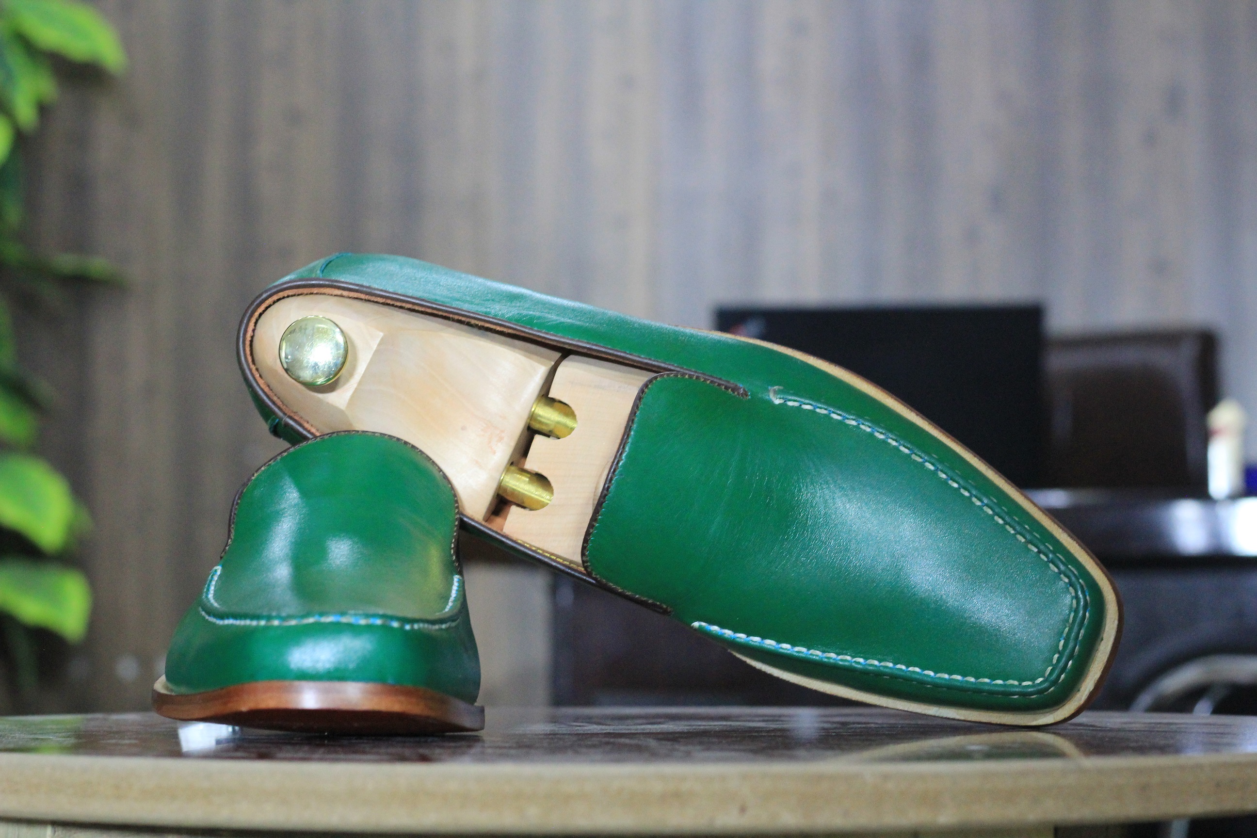 Men's Handmade Green Shoes, Loafer Shoes, Classic Leather Shoes