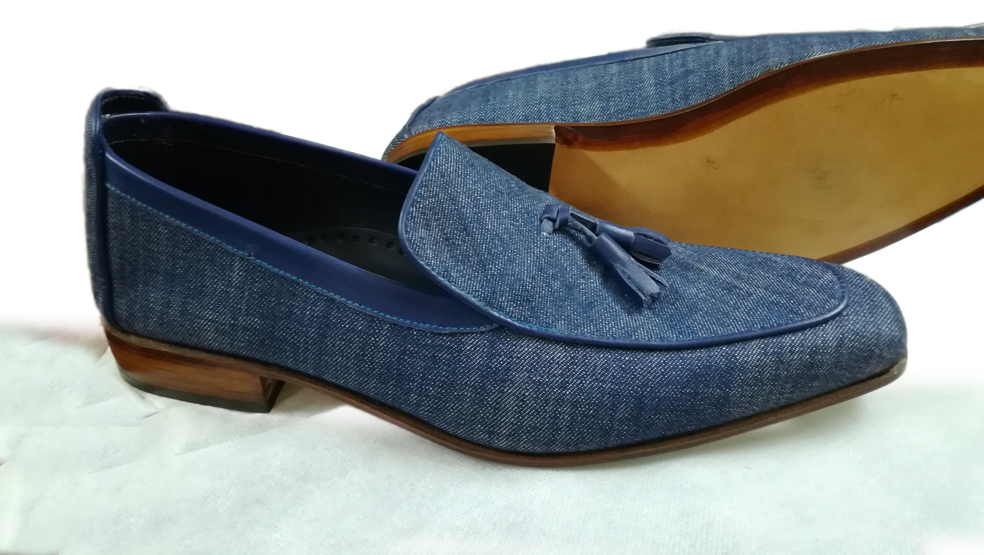 Handmade Tussle Denim Slipper Shoes, Party Shoes, Men's Shoes