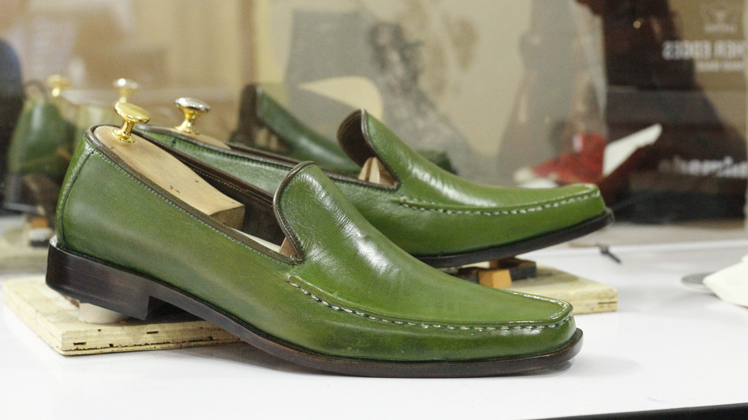 Men's Green Leather Loafer Shoes, Handmade Shoes Slip On Moccasin Shoes
