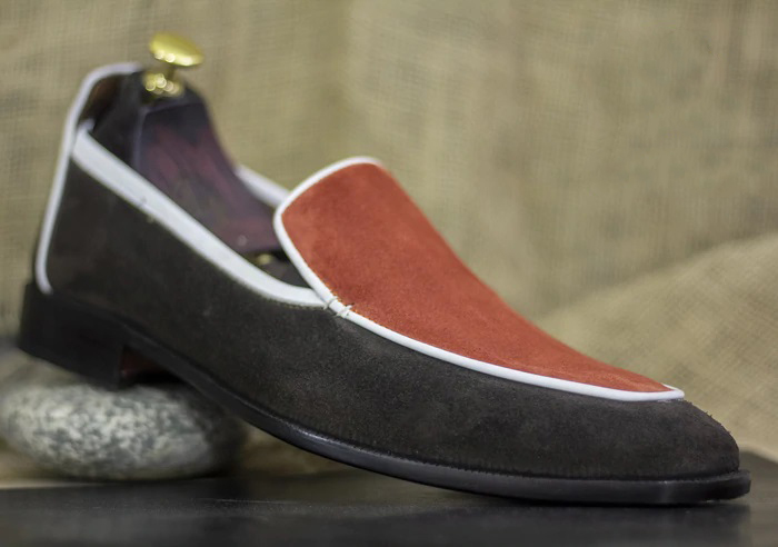 Men's Two Tone Suede Slip On Loafer Shoes Handmade Classic Shoes