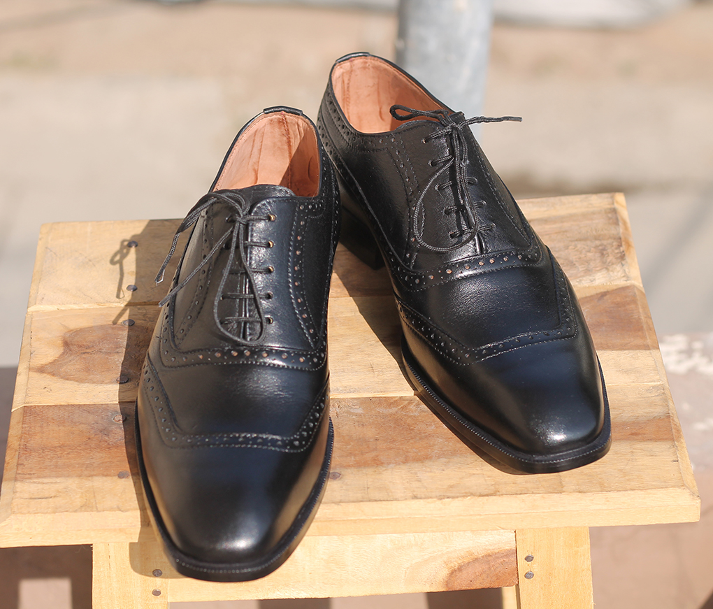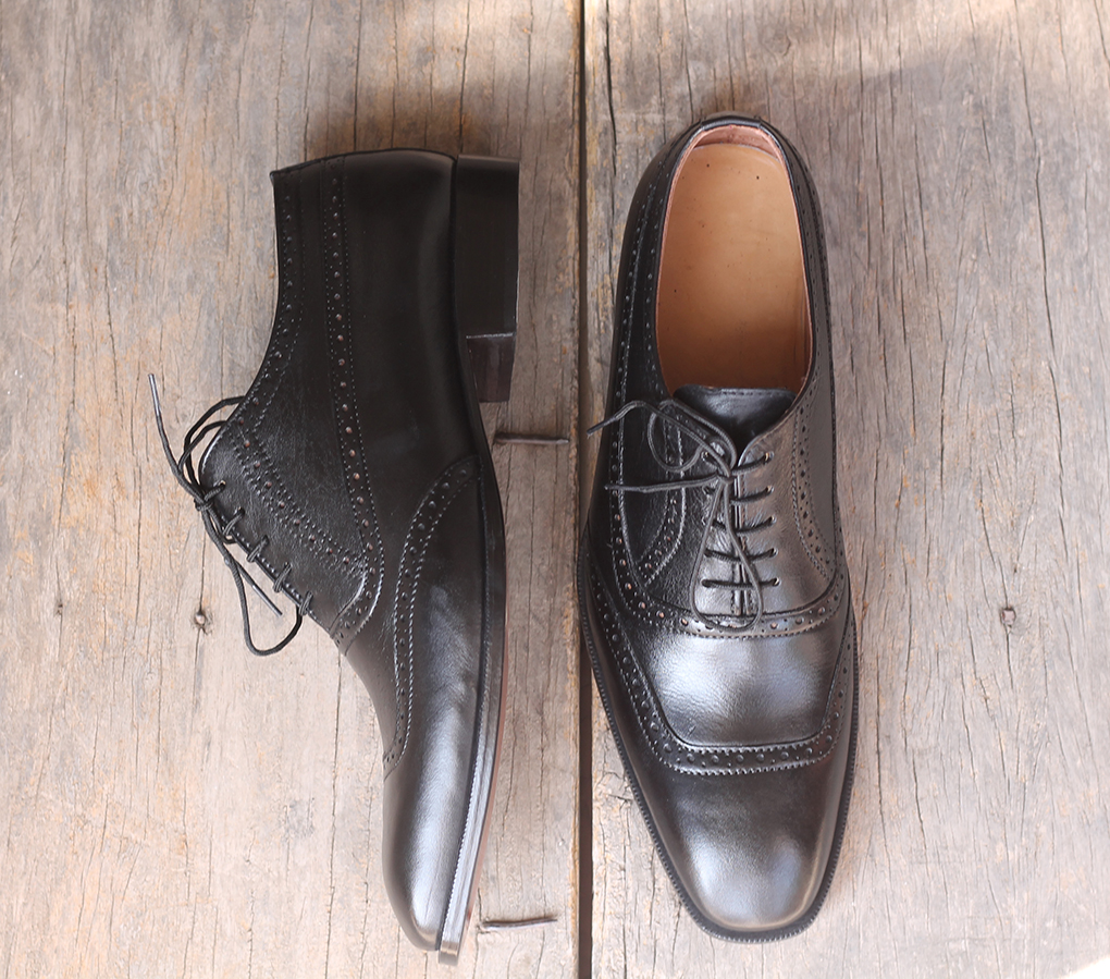 Men's Handmade Black Colour Leather Formal Shoes Men's Square Toe Lace Up Shoes