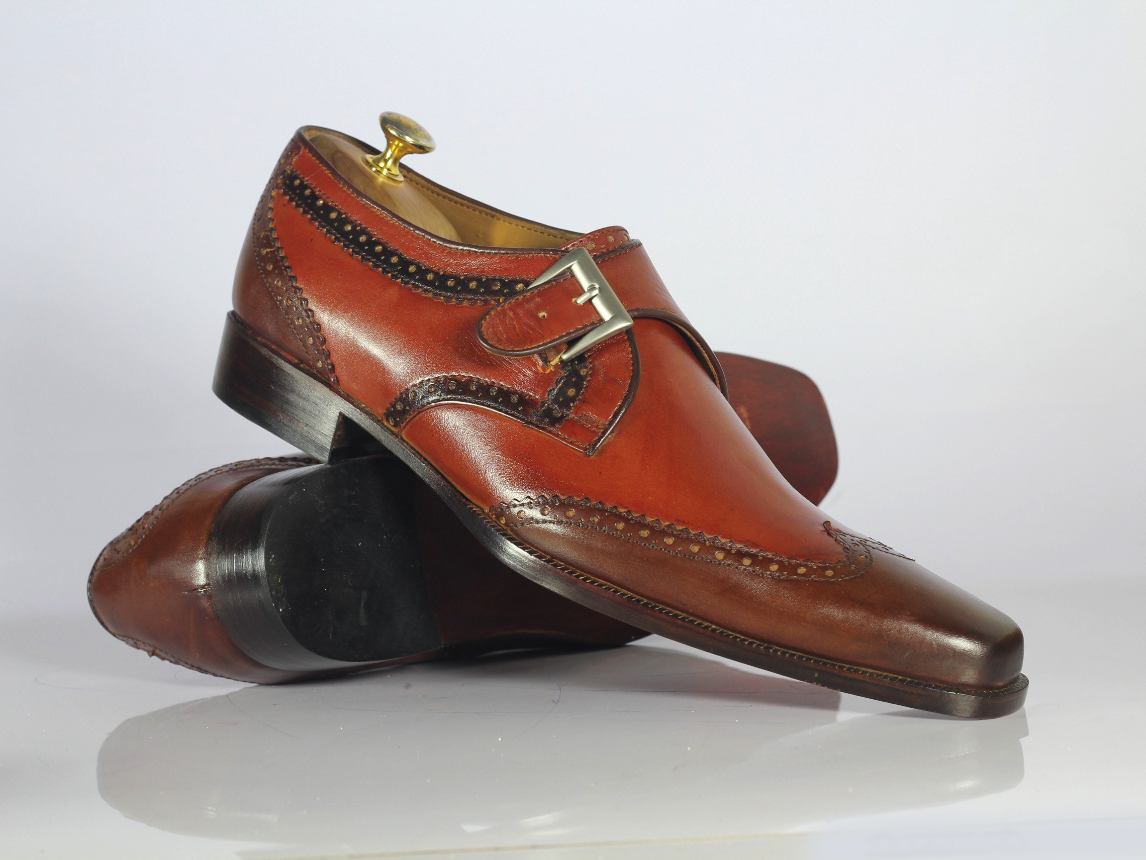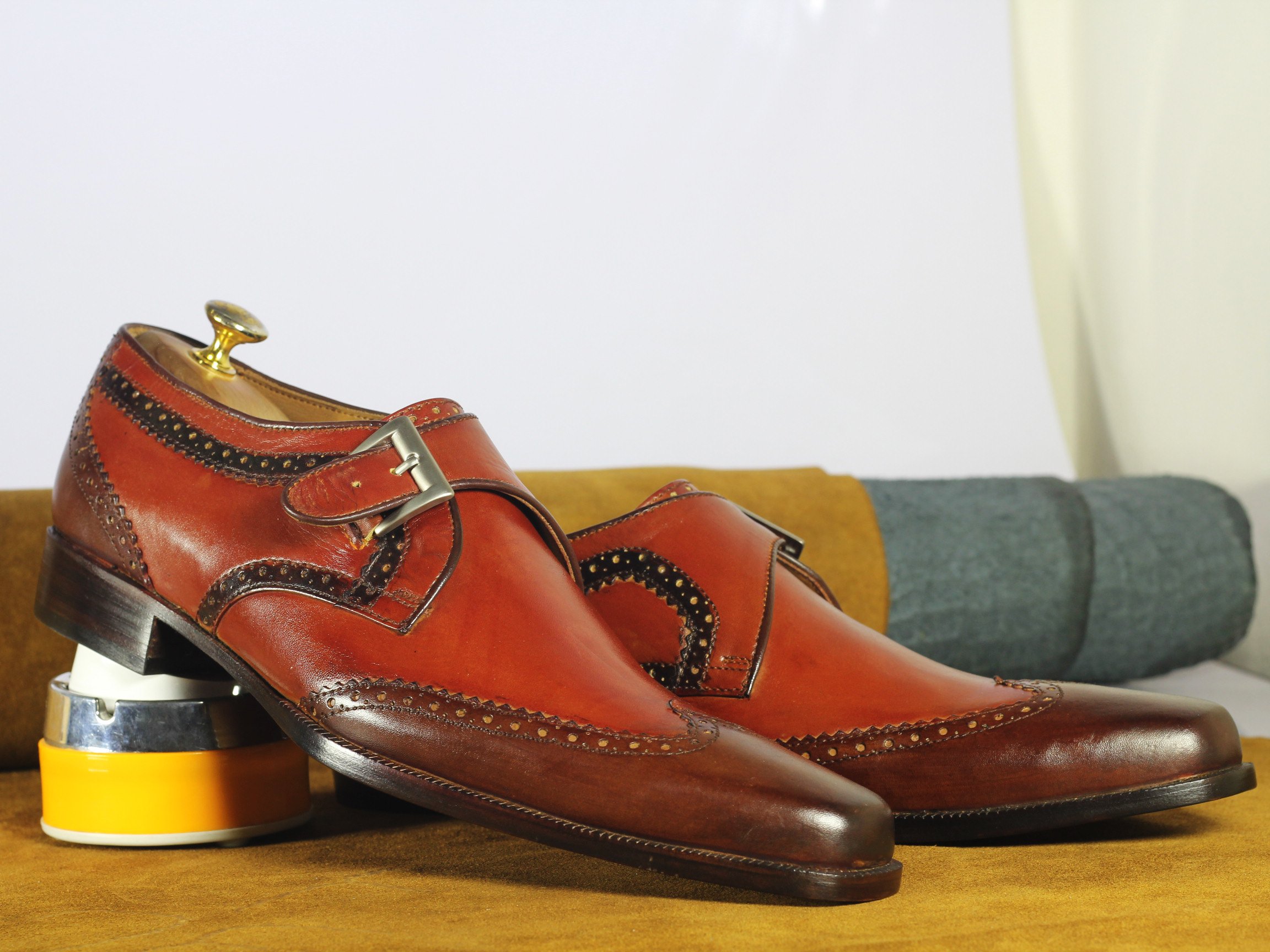 Handmade Brown Wing Tip Shoes Stylish Leather Buckle Shoes For Men's