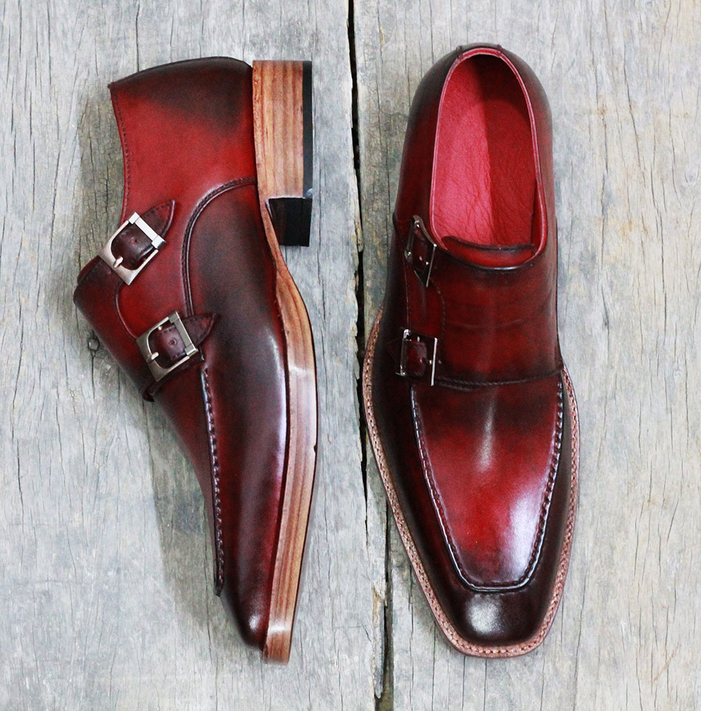 Handmade Two Tone Burgundy Leather Shoes,Men's Double Monk Formal Shoes