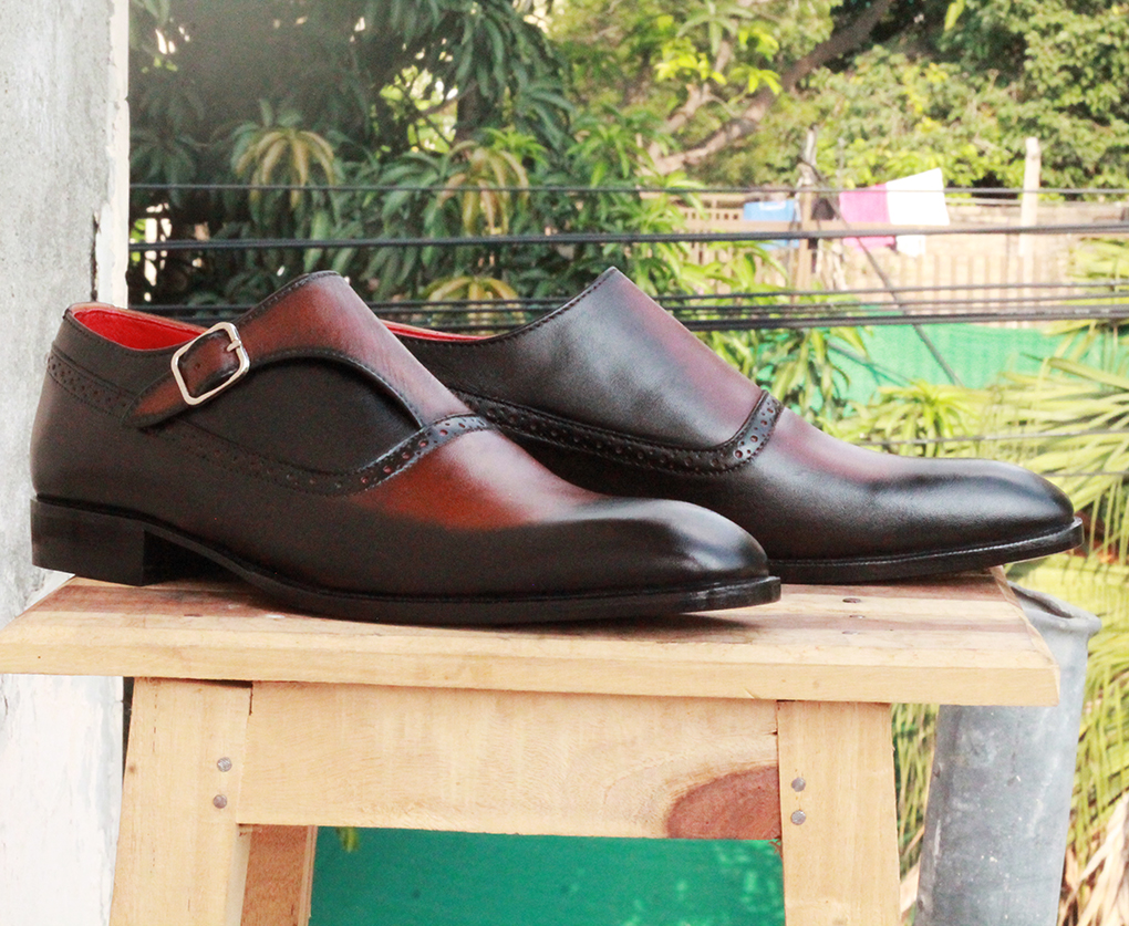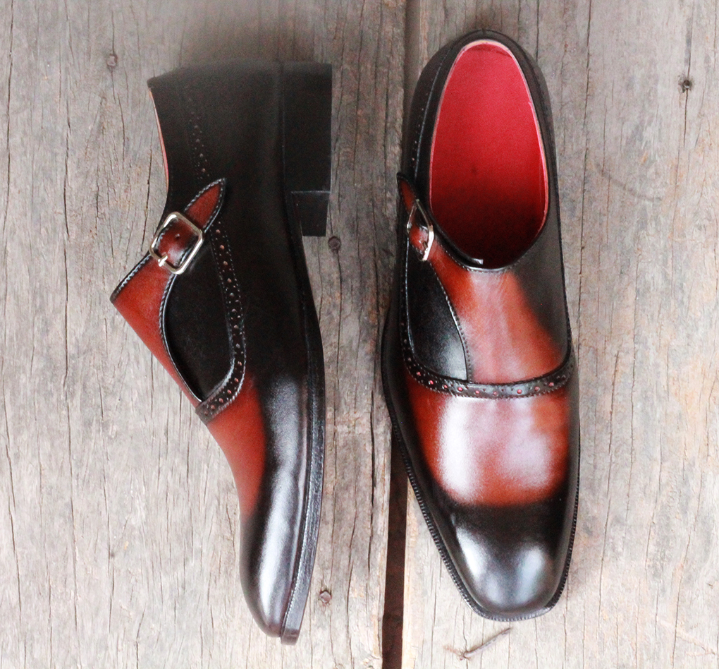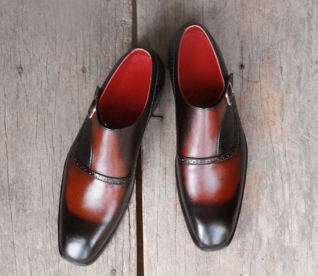 Men's Two Tone Cognac Genuine Leather, Handmade Monk Strap Casual Shoes