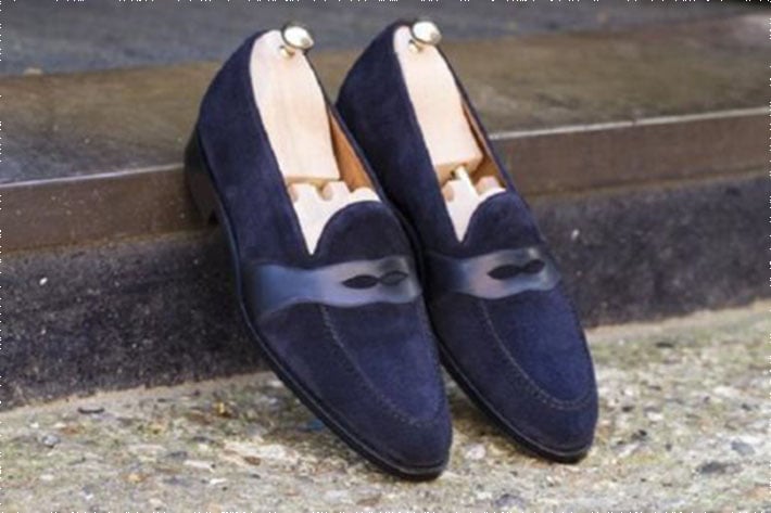 Handmade Men's Loafer Shoes, Men's Navy Blue Suede Loafer