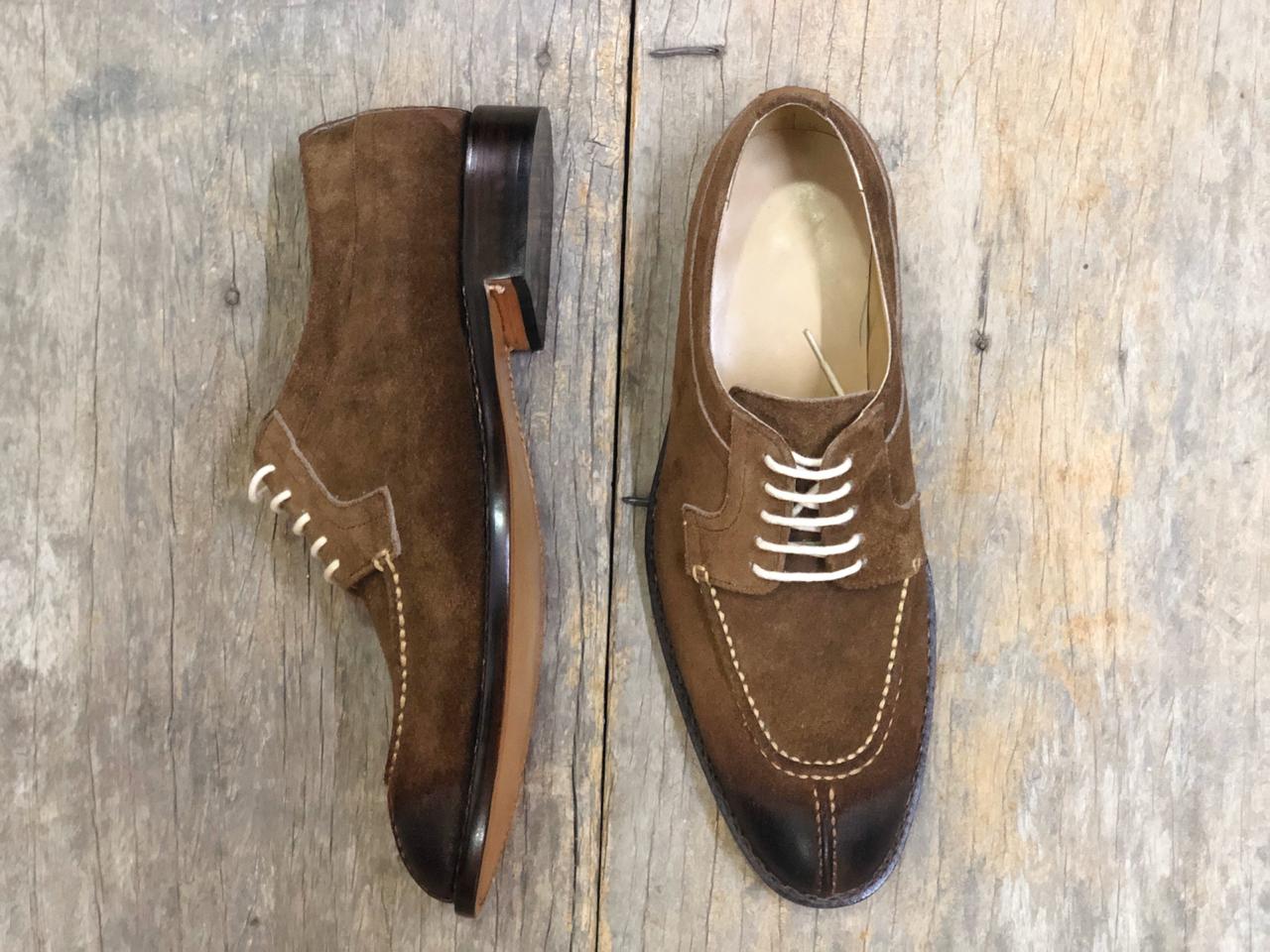 Handmade Two Tone Brown Split Toe Suede Lace Up Shoes For Men's