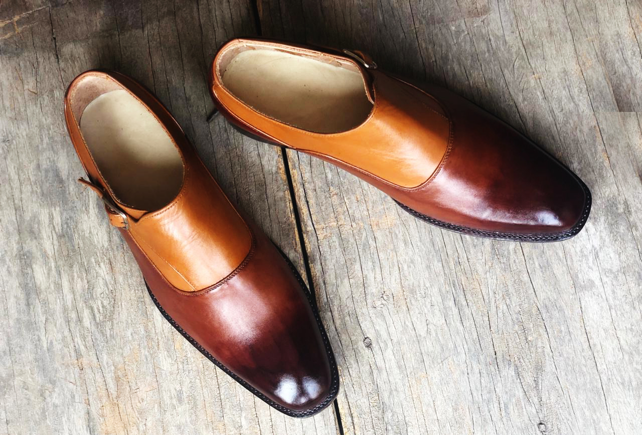 Handmade Men's Tan Brown Colour Shoes Stylish Leather Monk Strap Shoes