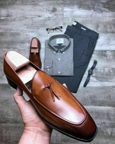 Handmade Men's Brown Leather Shoes, Slip On Loafer Moccasin Shoes