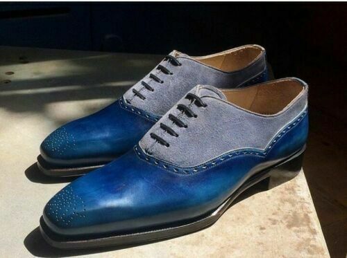 Men's Two Tone Leather Suede Handmade Spectator Lace Up Shoes, Brogue Toe Shoes