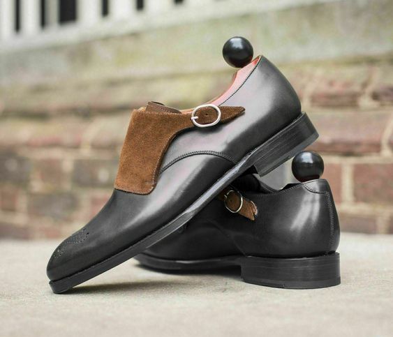 Men's Handmade Two Tone Side Buckle Shoes,Street Wear Classic Leather Suede Shoes