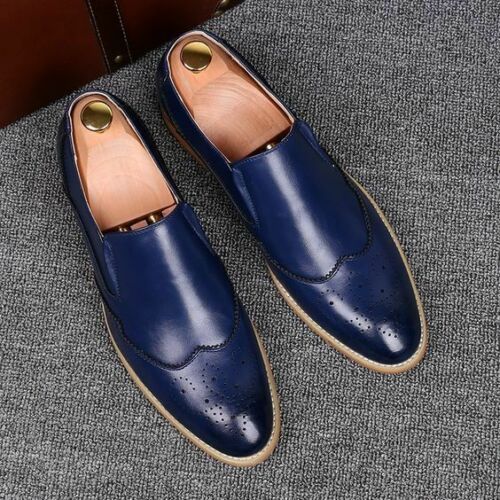 Handmade Blue Wing Tip Loafer Shoes, Brogue Toe Shoes,Classic Leather Shoes