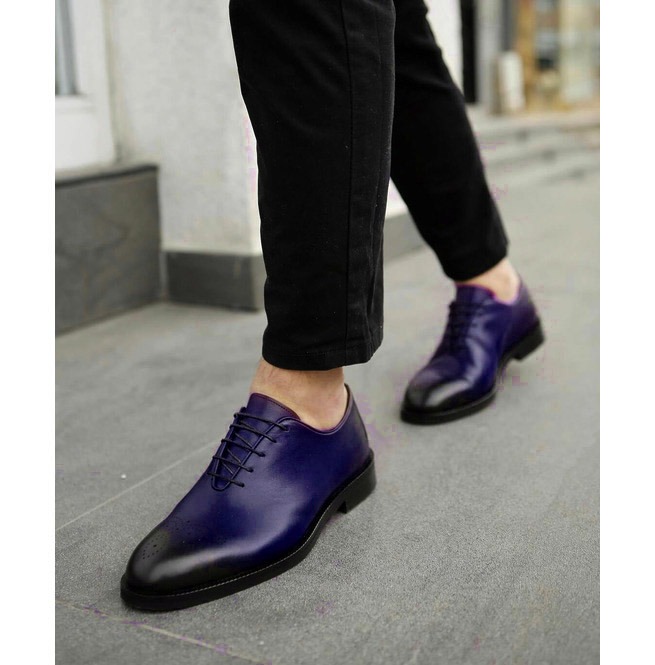 Men's Two Tone Lace Up Shoes, Brogue Toe Handmade Leather Shoes