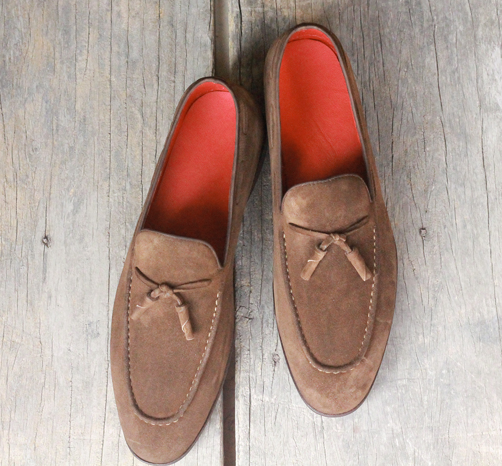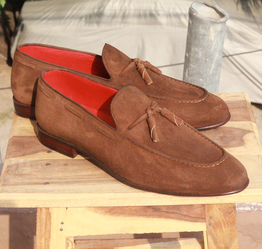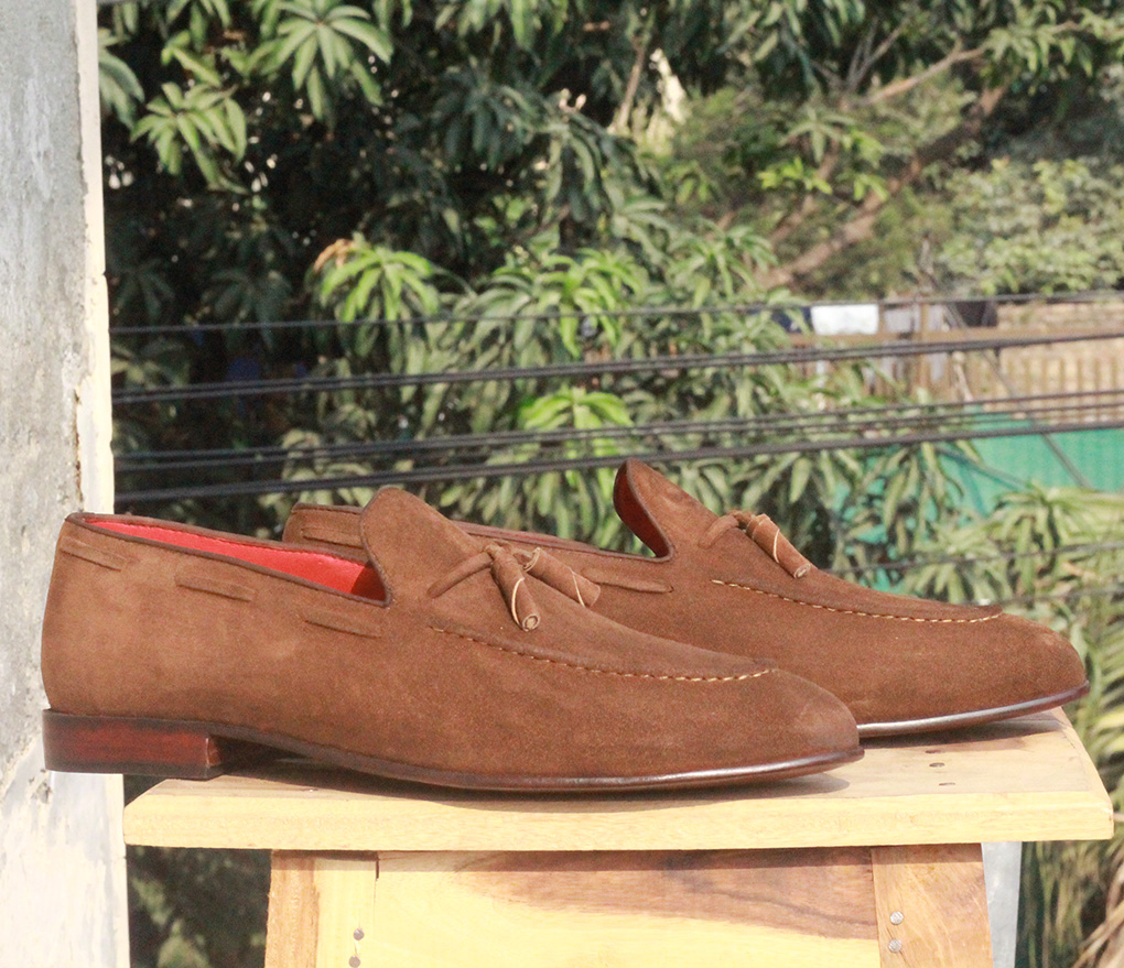 Men's Handmade Dark Brown Suede Shoes, Tussles Loafer Moccasin Shoes