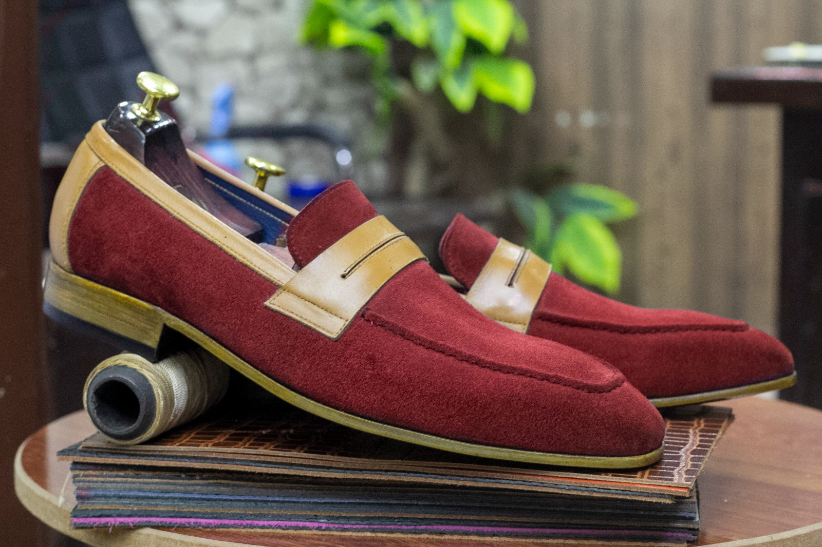Men's Handmade Burgundy Leather Suede Shoes,Penny Loafer Shoes for Men's