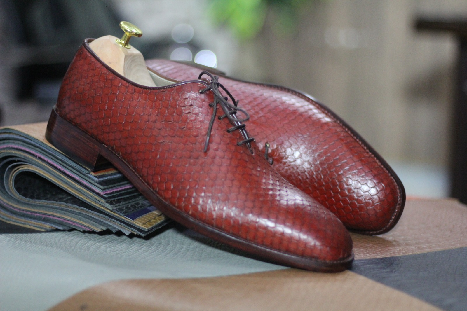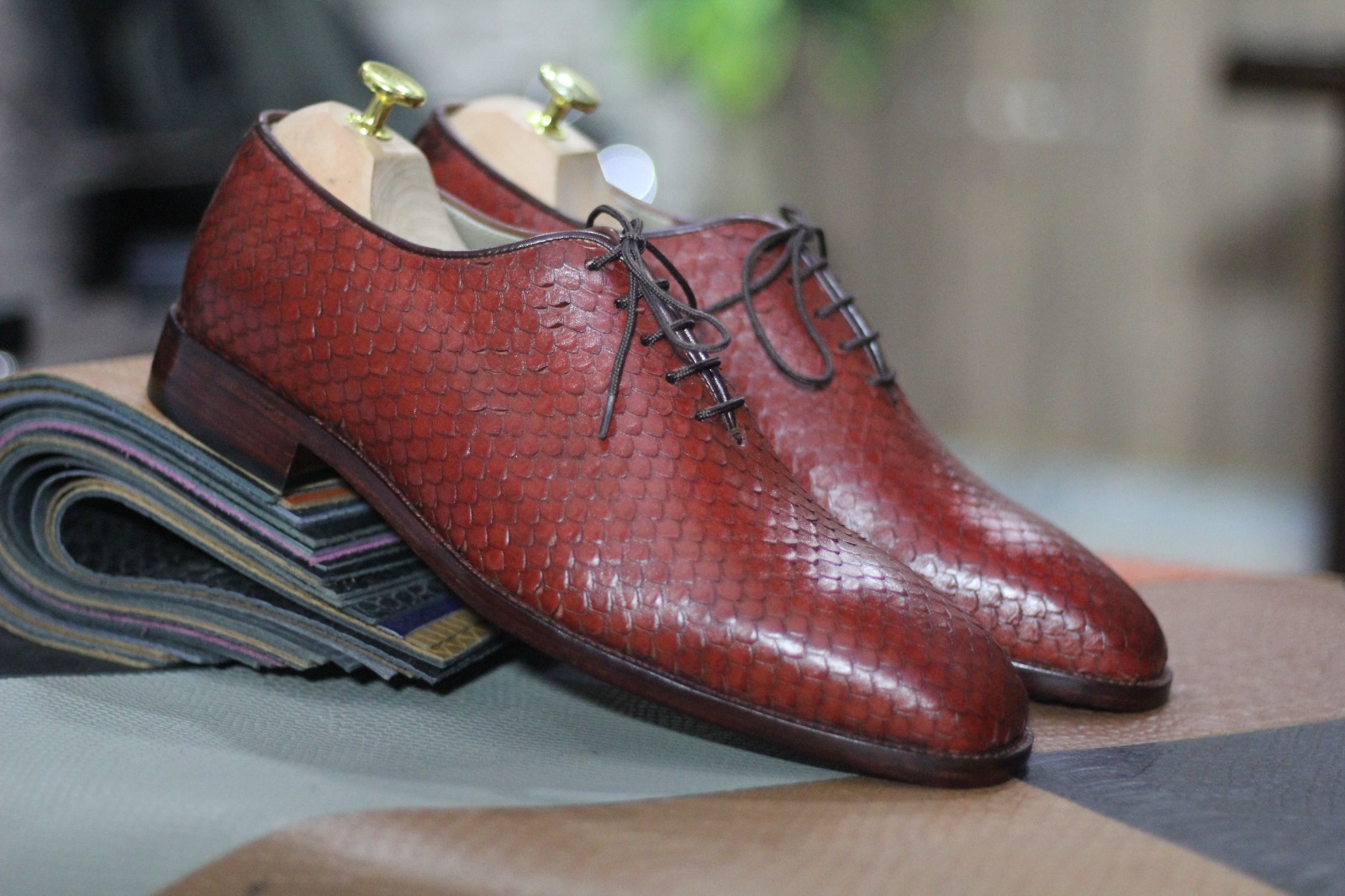 New Men's Python Texture Genuine Handmade Leather Lace Up Style Burgundy Colour Designer Shoes