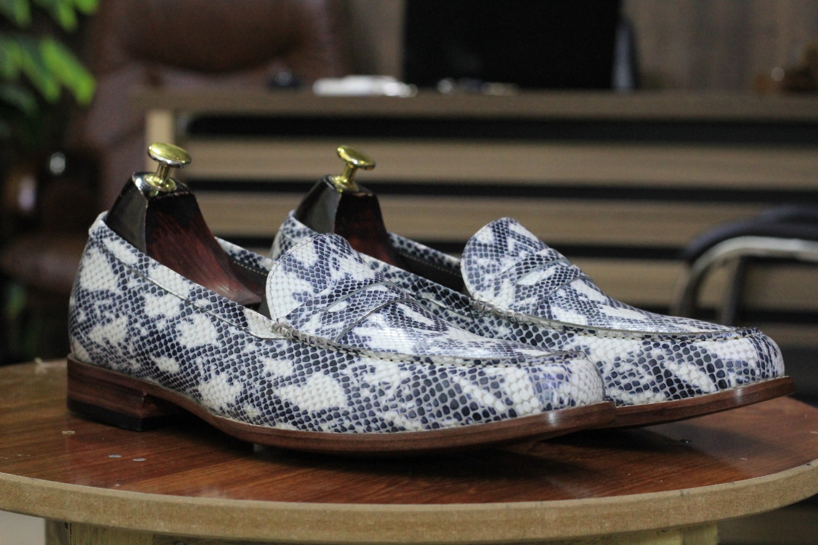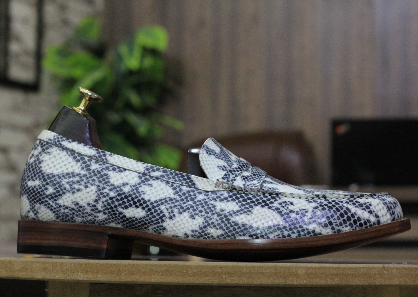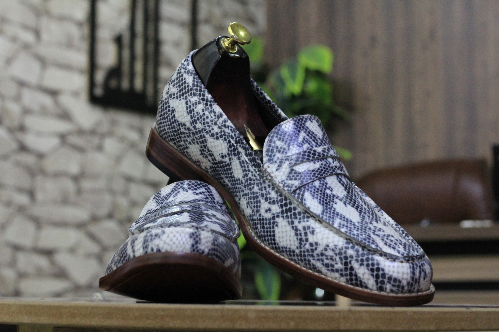 Handmade Penny Loafer Style Snake Texture Leather Slip On Moccasin Shoes