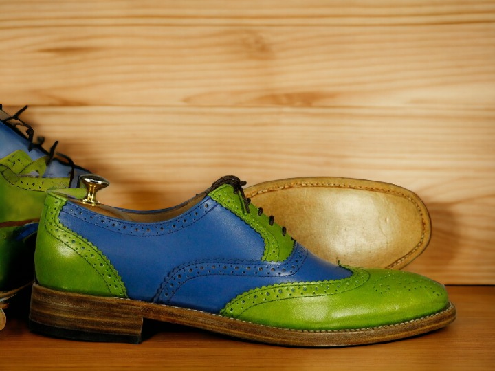 Handpainted Men's Two tone Leather Lace up Wing tip Office shoes
