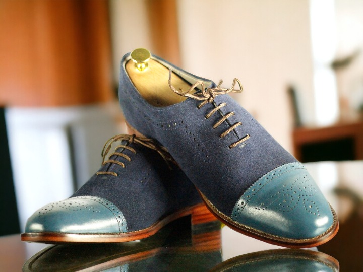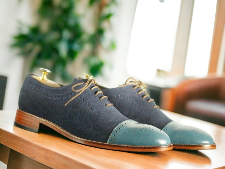 Handmade Men's Two tone Laceup CapToe Leather & Suede Shoes