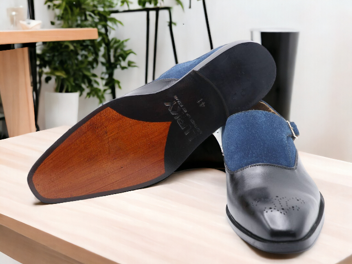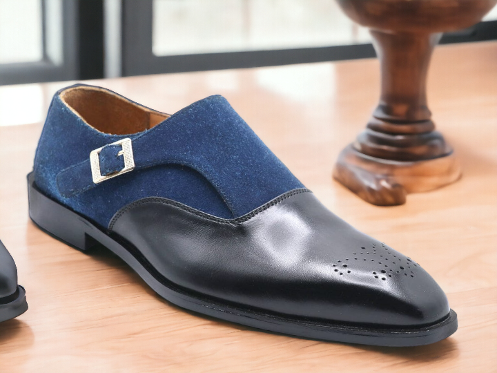 Handmade Men's Two tone Buckle Brogue Leather & SuedeToe Dress Shoes