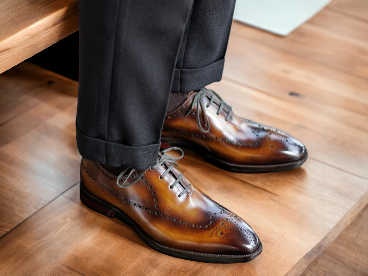 Handmade Two tone Brown Leather Lace up Wing tip Office Shoes