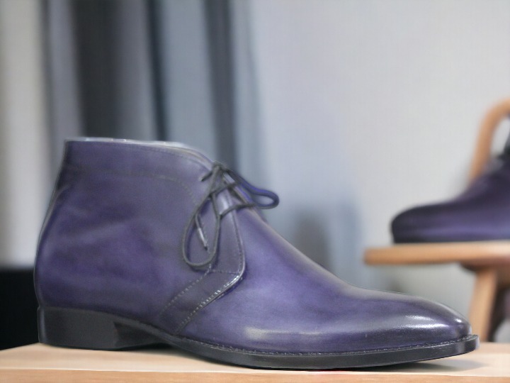 Handmade Men's Purple Leather Lace up Chukka Boot