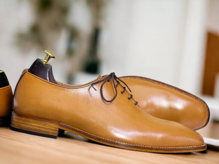 Handmade Brown Leather Laceup Plan Toe Men's Formal Shoes