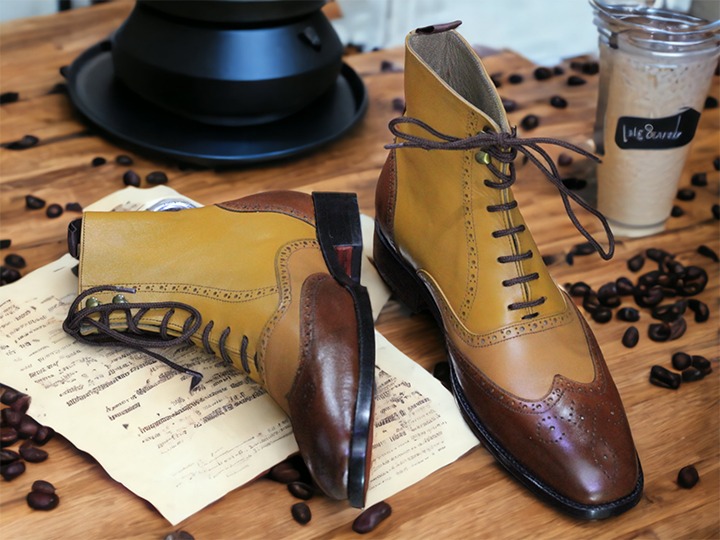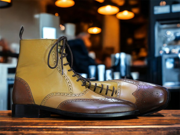 Handmade Leather Men's Two Tone Laceup Wing Tip Ankle Boot