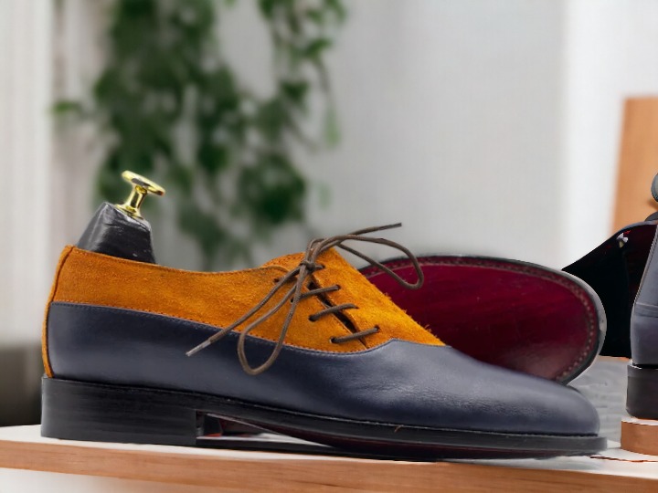 Men Two Tone Designer Suede And Leather Side Lace Up Shoes