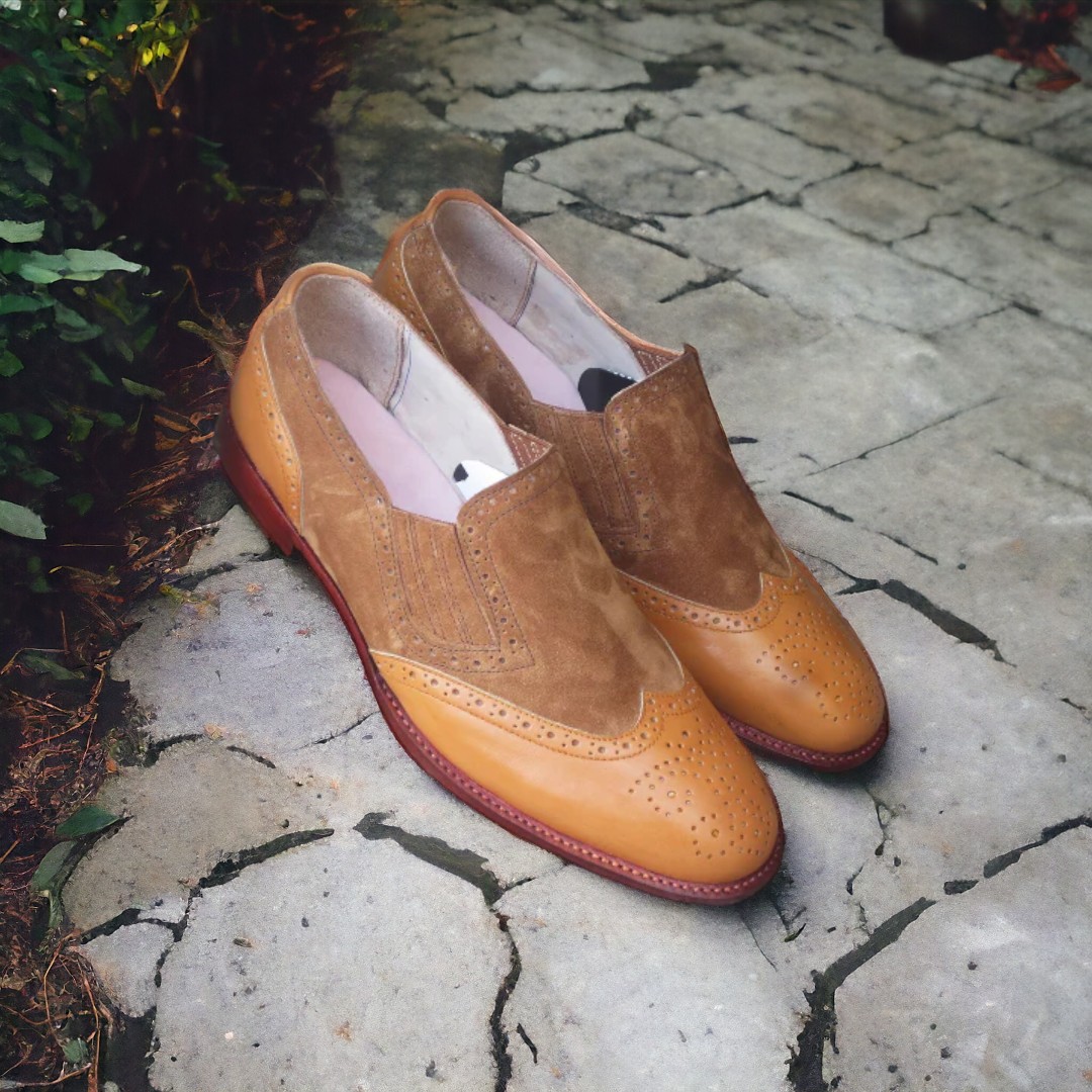 Handmade Men's Brown Leather & Suede Loafer Shoes