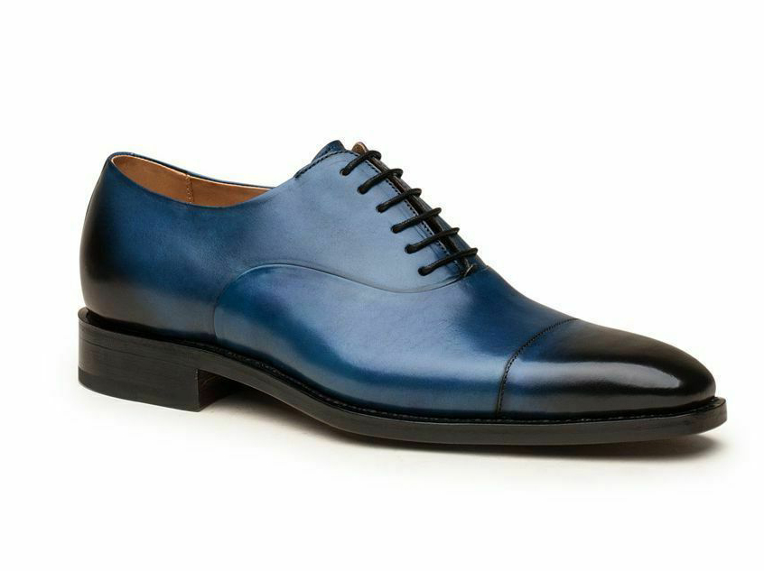 Handmade Blue Cap Toe Lace Up Leather Shoes For Men's