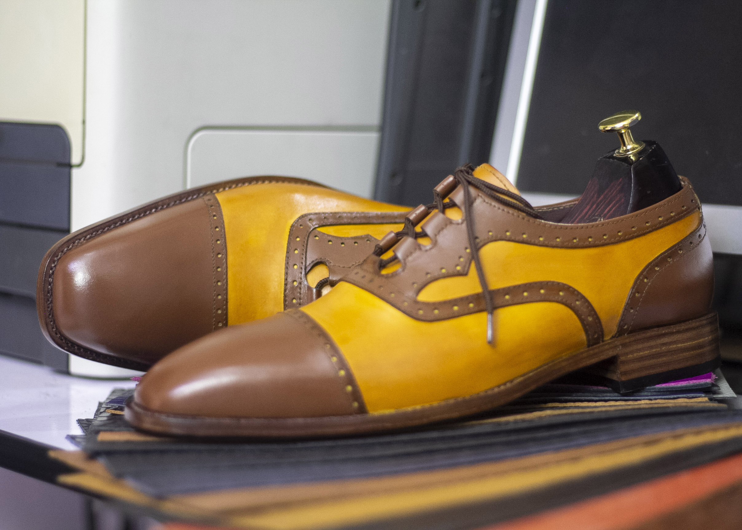 Handmade Two Tone Cap Toe Lace Up Dress Leather Shoes For Men's