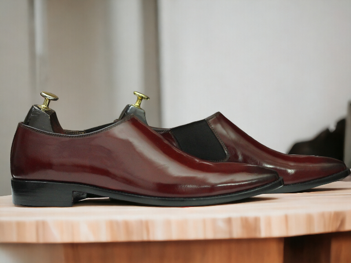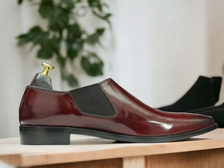 Handmade Burgundy Genuine Leather Shoes, Men's Half Chelsea Shoes