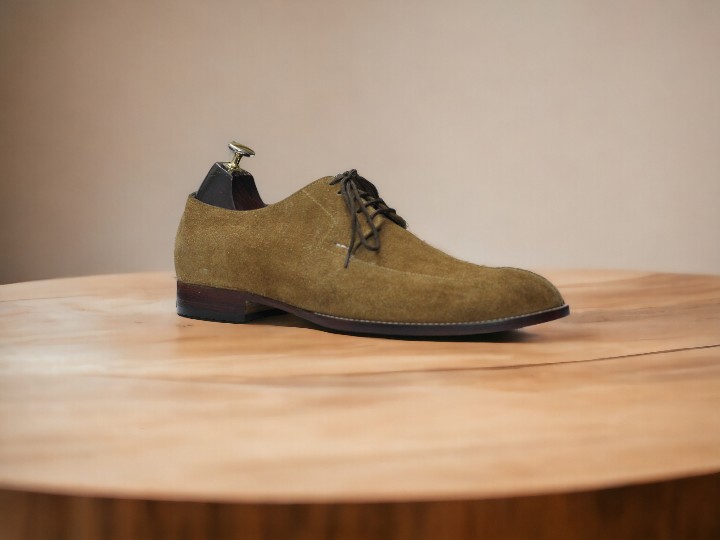 Handmade Beige Suede Split Toe Lace Up Dress Shoes For Men's