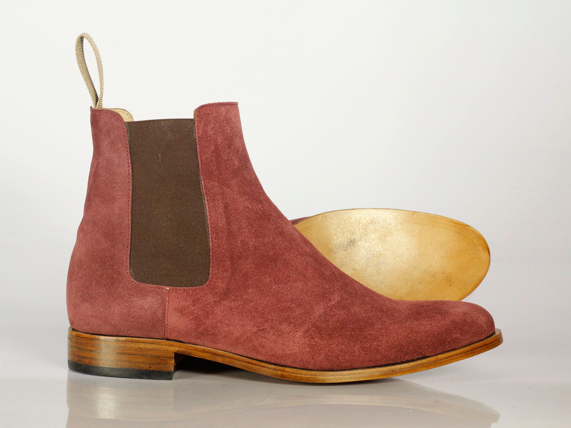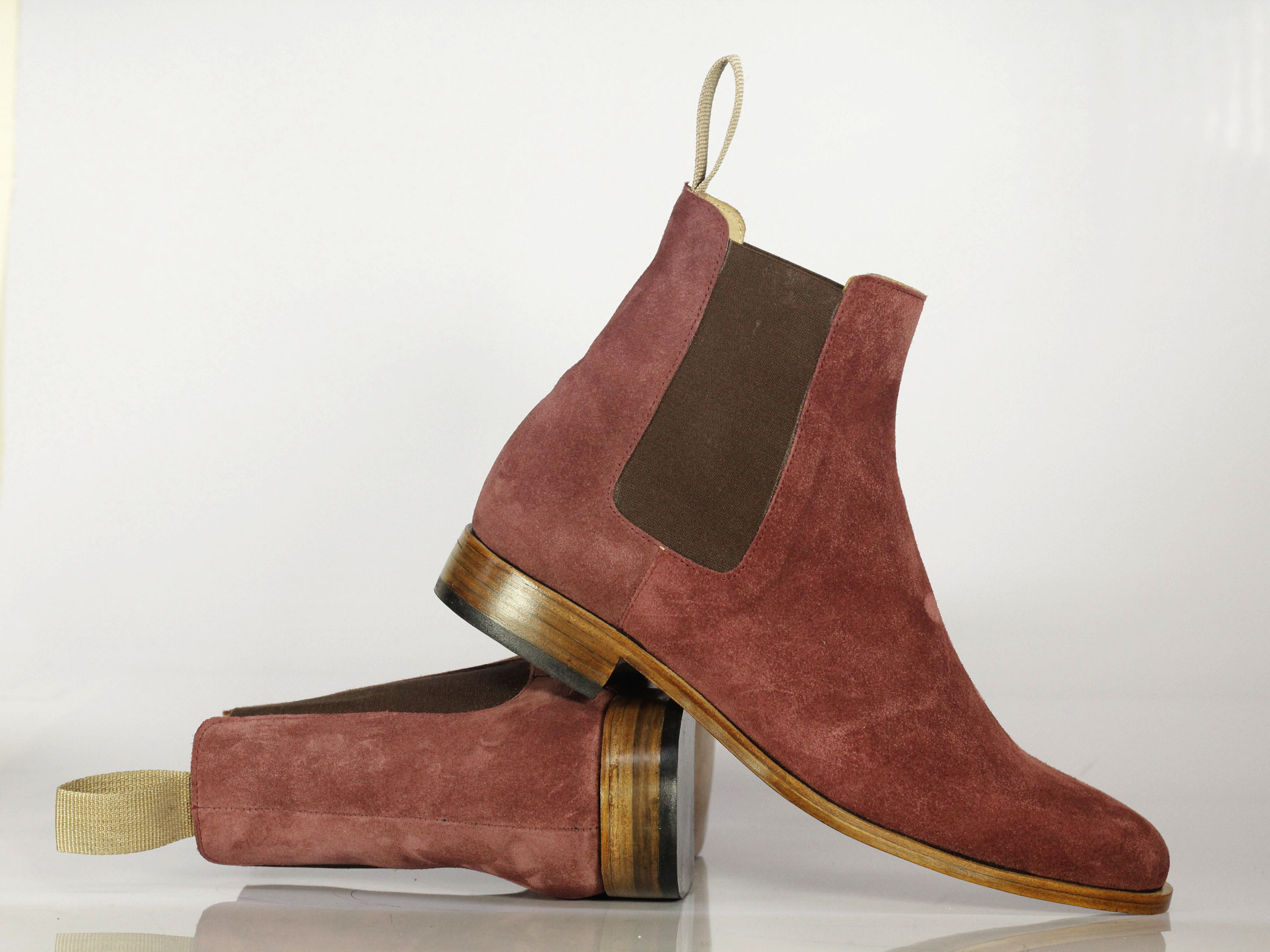 Men's Ox Blood Color Suede Ankle Chelsea Dress Boots