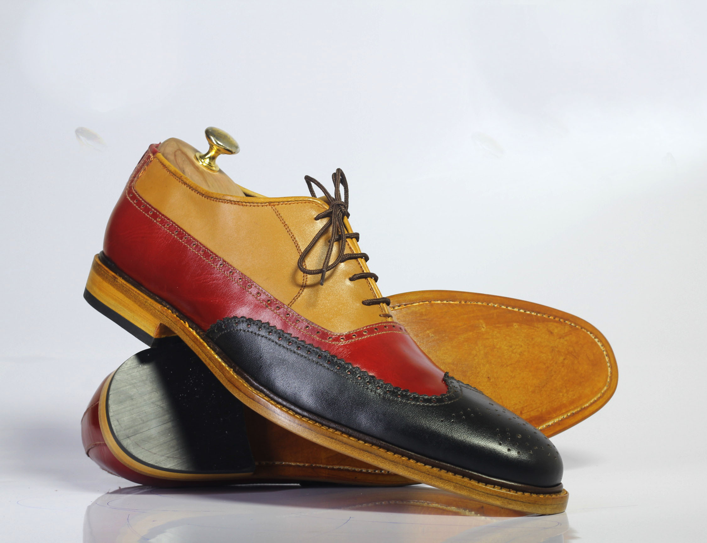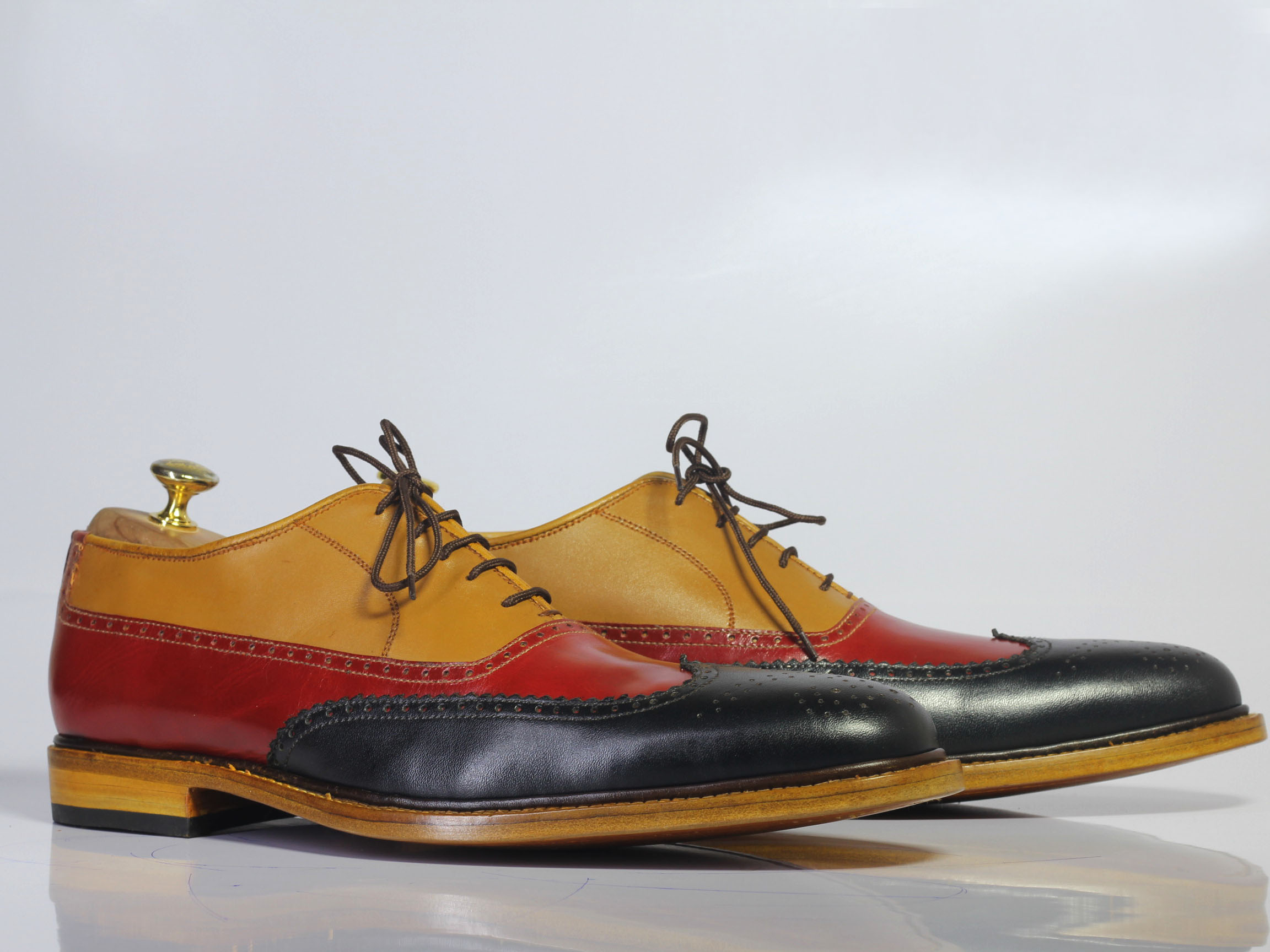 Handmade Men's Multi Color Wing Tip Brogue Dress Lace Up Leather Shoes