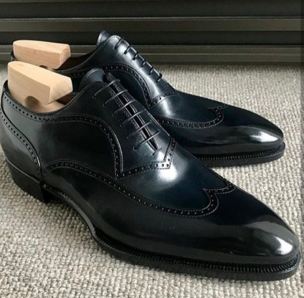 Handmade Black Leather Stylish Wing Tip Lace Up Shoes For Men's