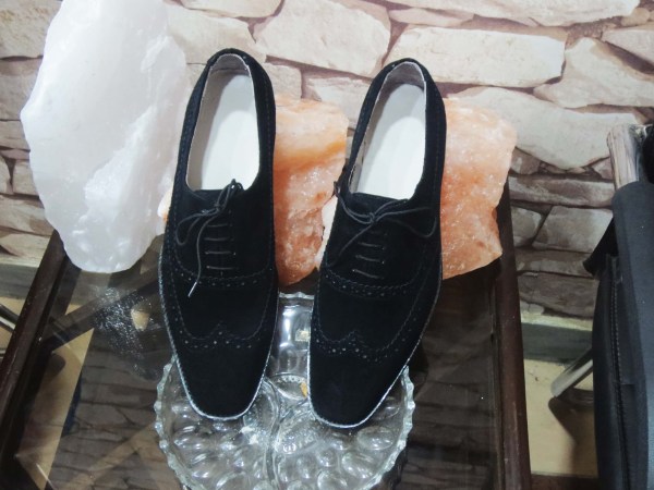 Handmade Black Suede Wing Tip Lace Up Stylish Shoes For Men's