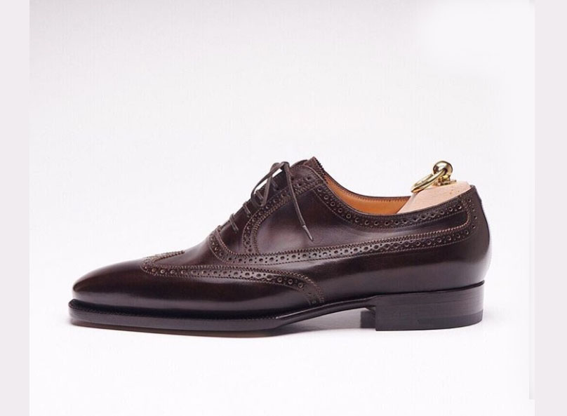Handmade Men's Brown Wing Tip Leather Dress Formal Lace Up Shoes