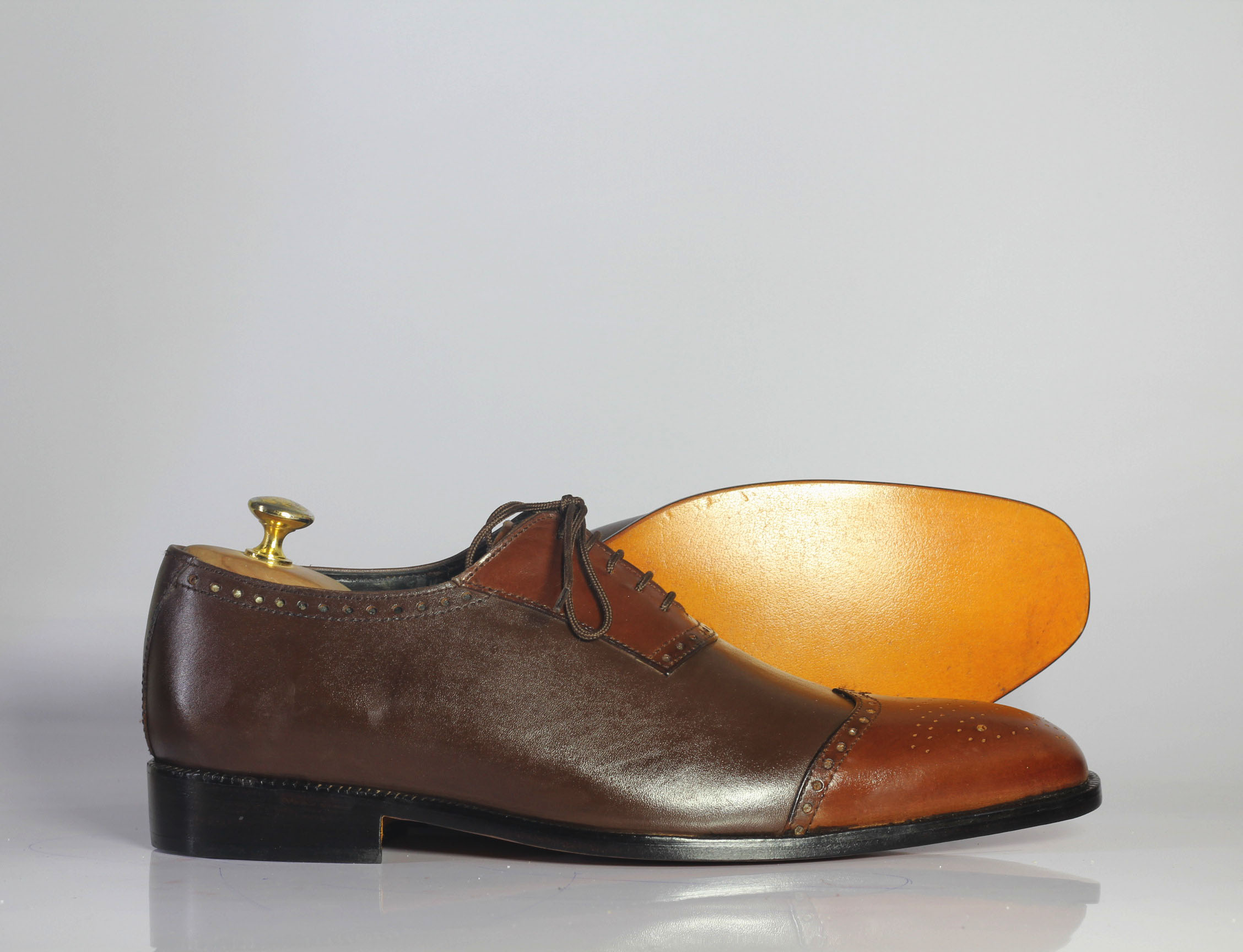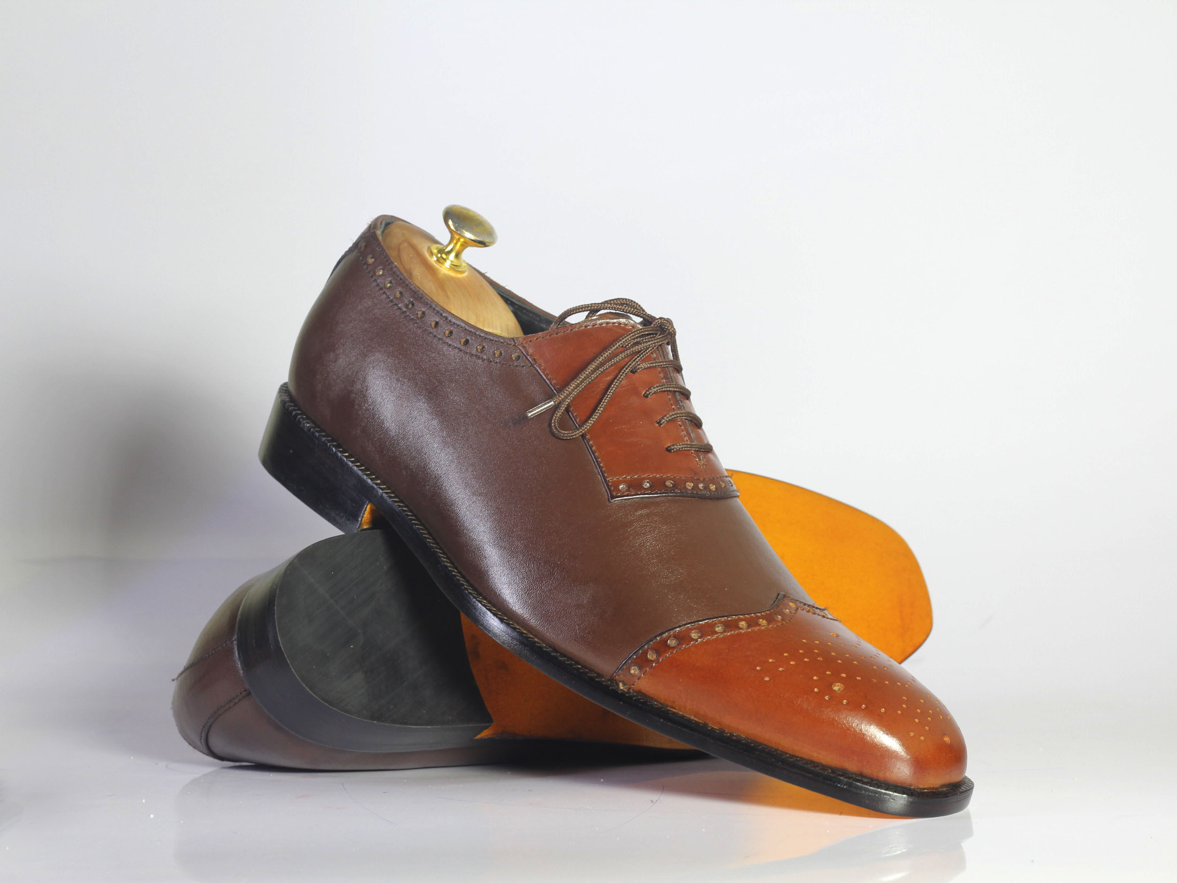 Handmade Men's Brown & Tan Leather Wing Tip Brogue Dress Shoes