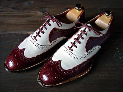 Handmade Men's White & Burgundy Wing Tip Brogue Leather Lace Up Shoes