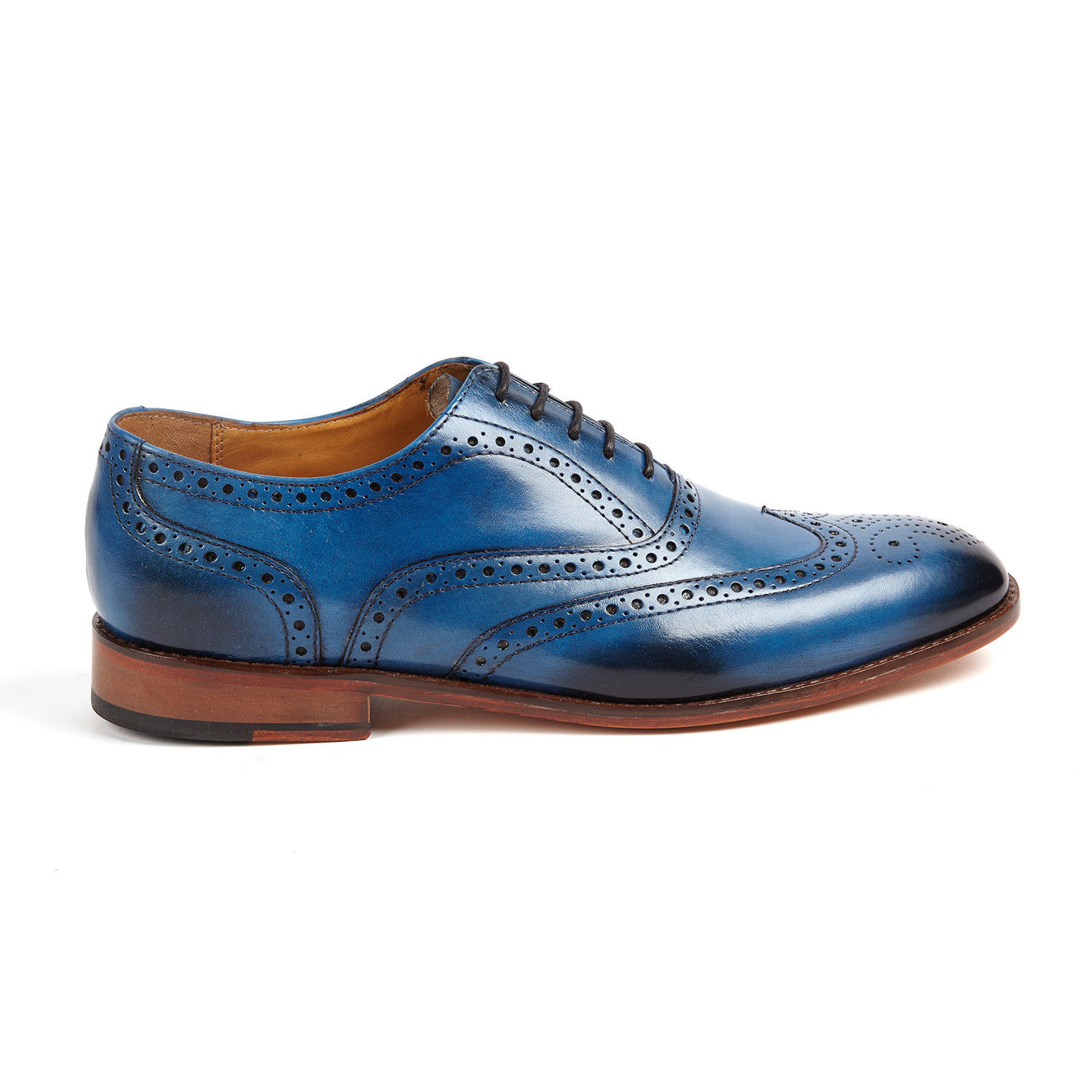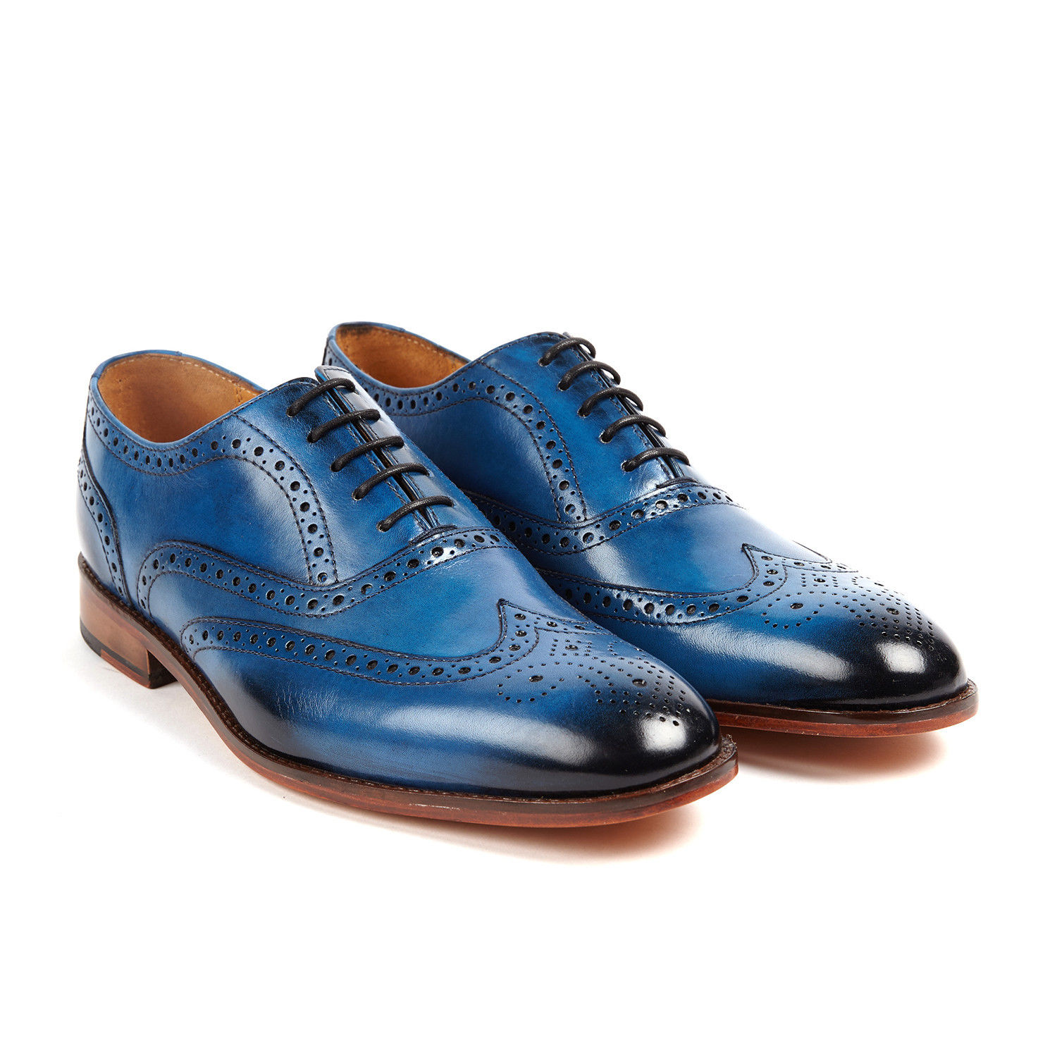 Handmade Blue Color Leather Wing Tip Brogue Lace Up Shoes For Men's