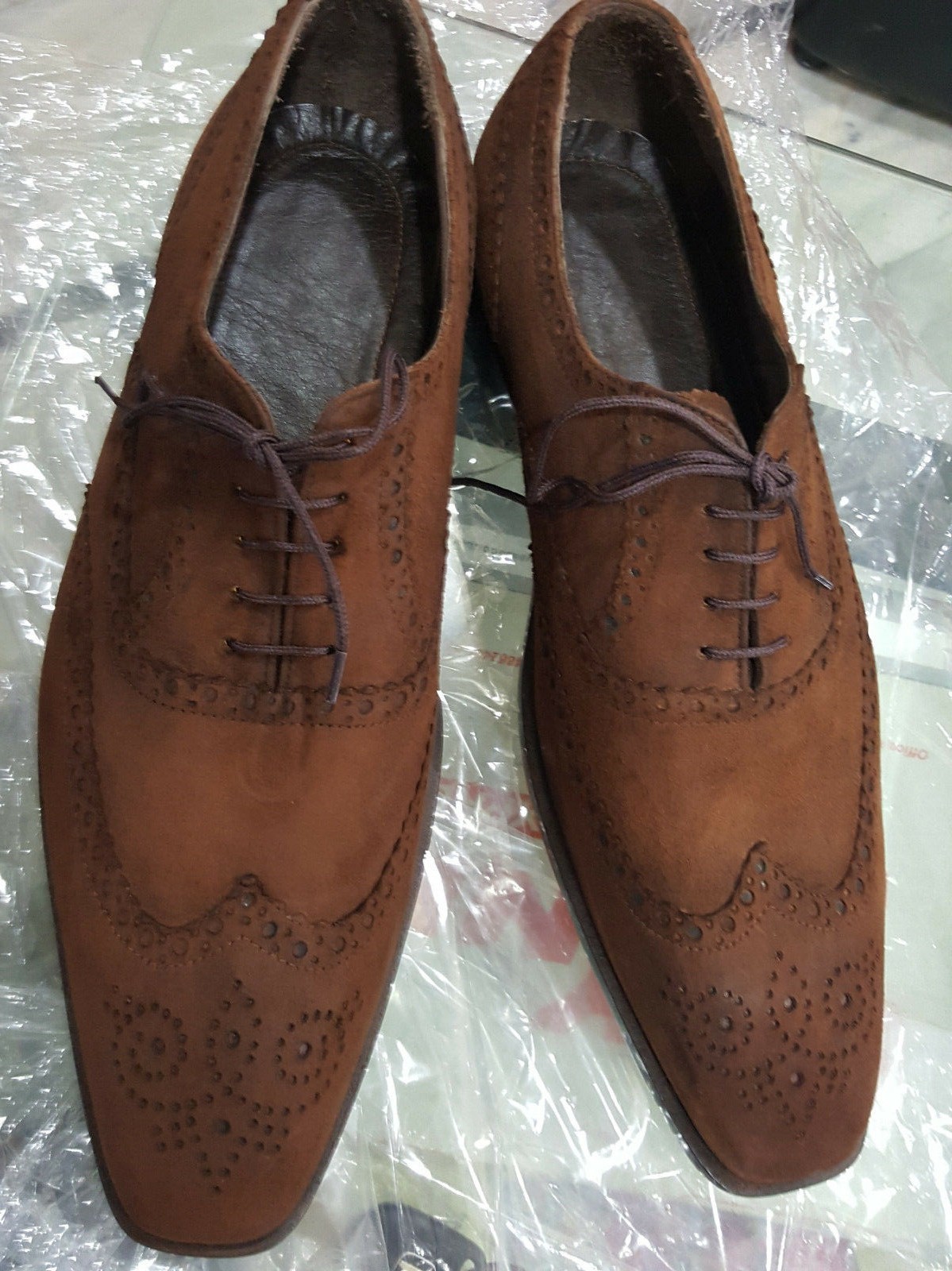 Handmade Brown Color Suede Wing Tip Brogue Lace Up Shoes For Men's