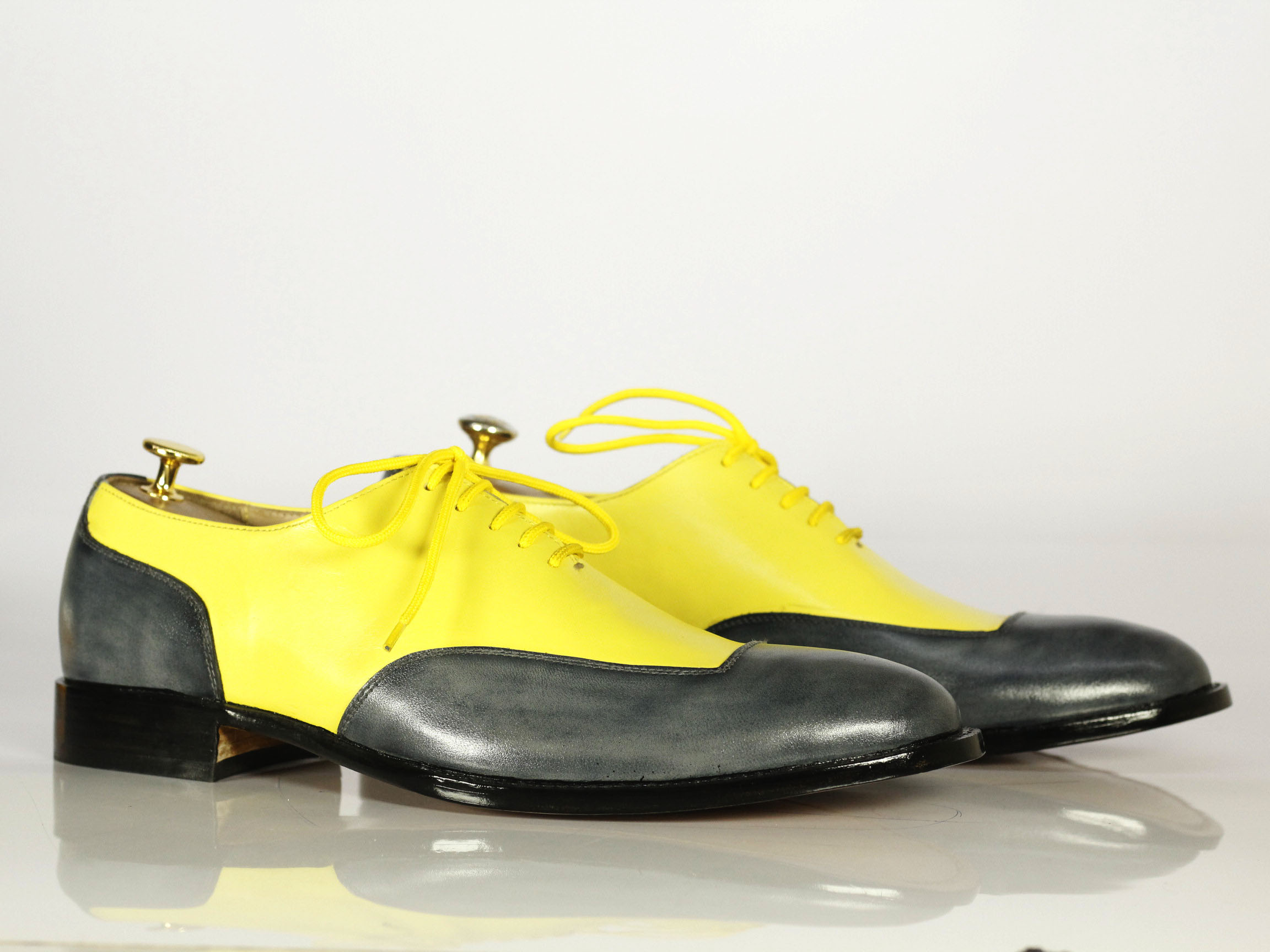 Men's Yellow & Grey Color Leather Stylish Dress Shoes