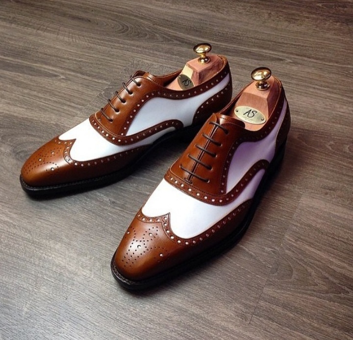 Men's White & Brown Leather Wing Tip Brogue Dress Formal Shoes